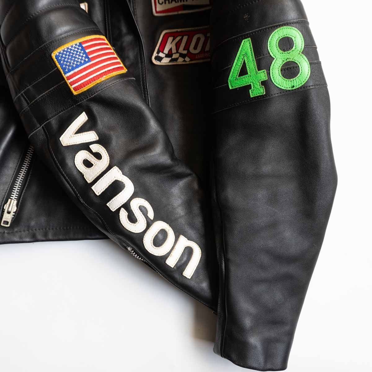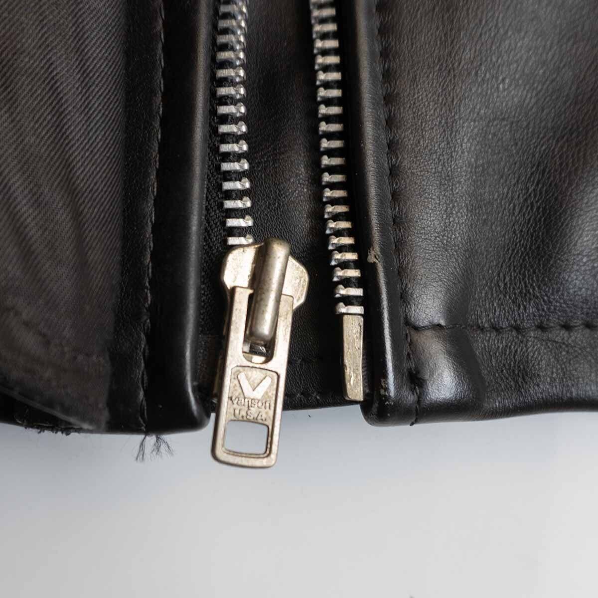 【雰囲気抜群/ビッグサイズ】 VANSON 【TC レザー ライダースジャケット】42 ブラック ワッペン USA製 バンソン 25100980