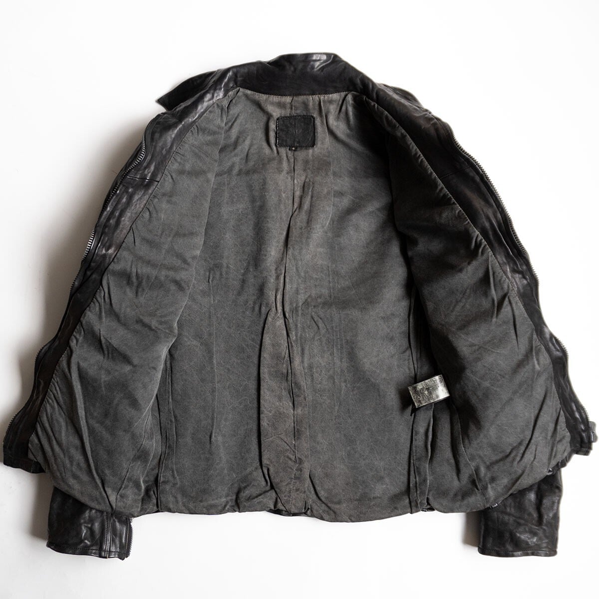 バックラッシュを代表する、革のダブルショルダーです。成牛の肩部分の革をベルギーから仕入れたベルギーダブルショルダーレザーを使った一着です。お探しの方や気になる方は是非。