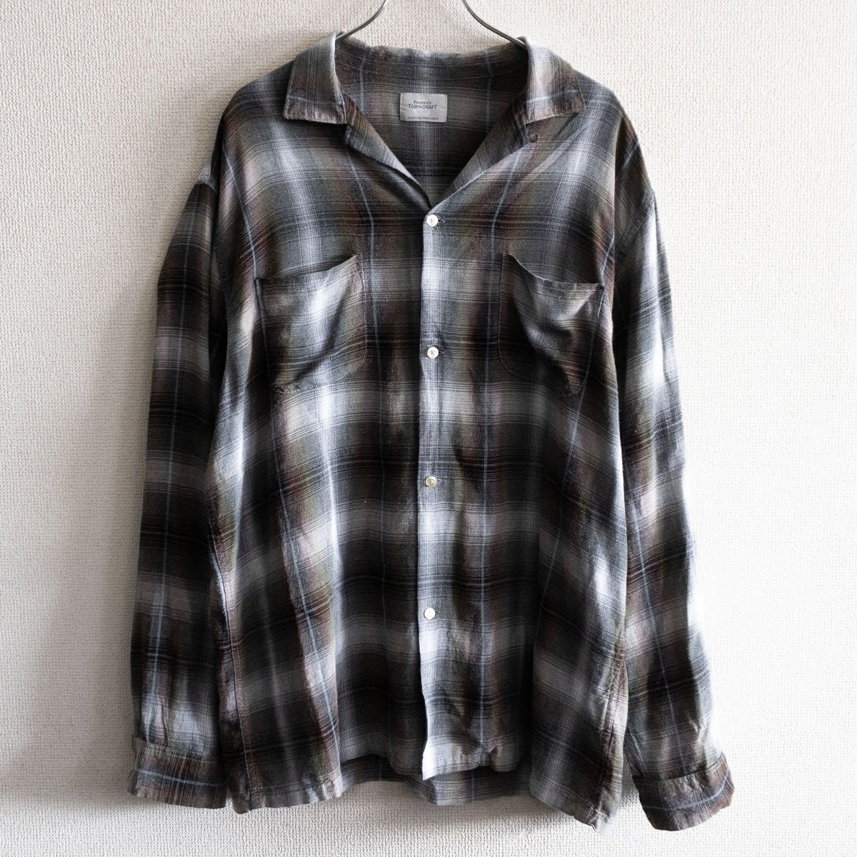 【雰囲気抜群】TOWNCRAFT【オープンカラーレーヨン オンブレチェックシャツ】L ボックスシルエット タウンクラフト 復刻 25101076