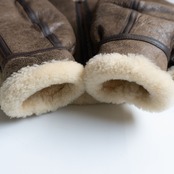 ボディには肉厚ながらモチっとした弾力性を持つ上質のシープスキン(羊革)が使用されております。裏地にはふかふかのムートンボアが敷き詰められ最高の着心地・防寒性を誇ります。良いものをお探しの方は是非。