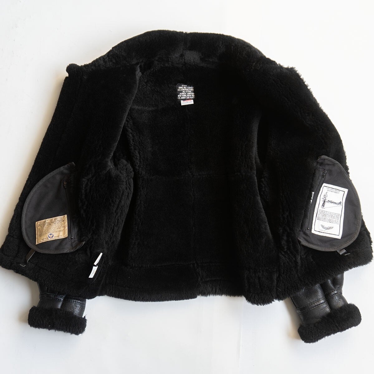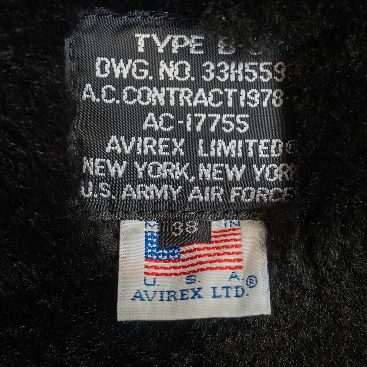 【美品/胸ロゴ】AVIREX【B-3 ムートンボンバージャケット】38 ブラック アヴィレックス フライト レザー ジャケット 25101040
