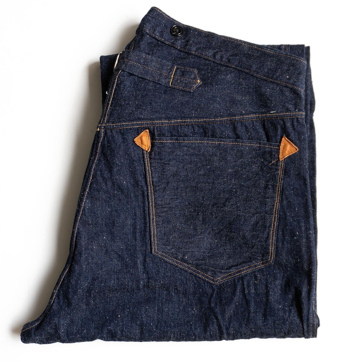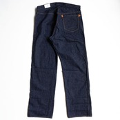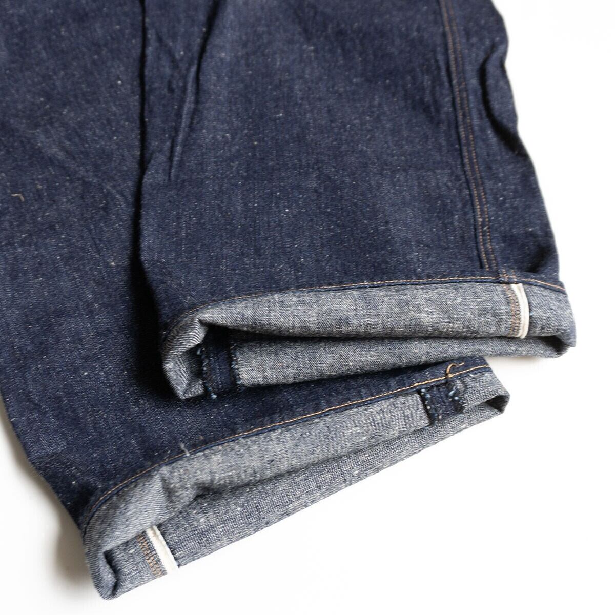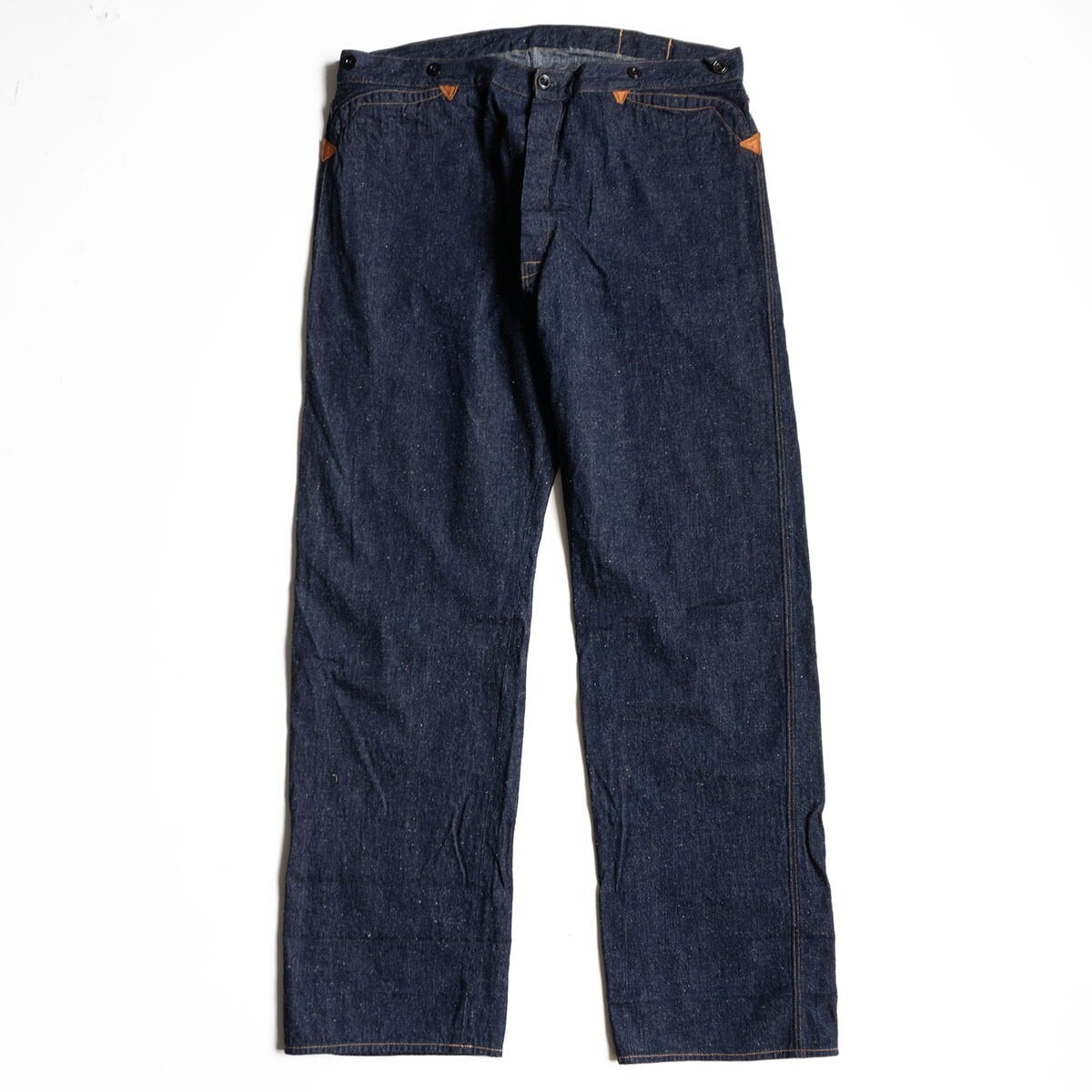 グリーンバウム を代表するウエストオーバーオールが、この3ポケットタイプのモデル。1874年にパテントを取得したリベット箇所を革で補強する仕様をはじめとして、コインポケットがつかないフロントポケット。立体的なL字のその形状も、明らかにオリジナルの仕様です。デニムはこの時代には珍しく細い番手がヨコ糸に使用されたライトオンス綾( 2/1綾 :タテ糸2本、ヨコ糸1本の順に浮いている綾織)となります。お探しの方は是非。