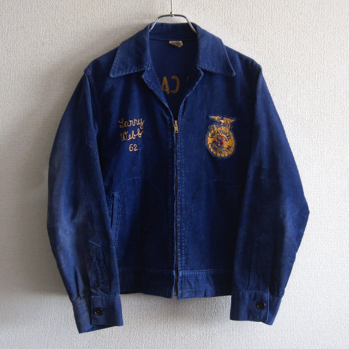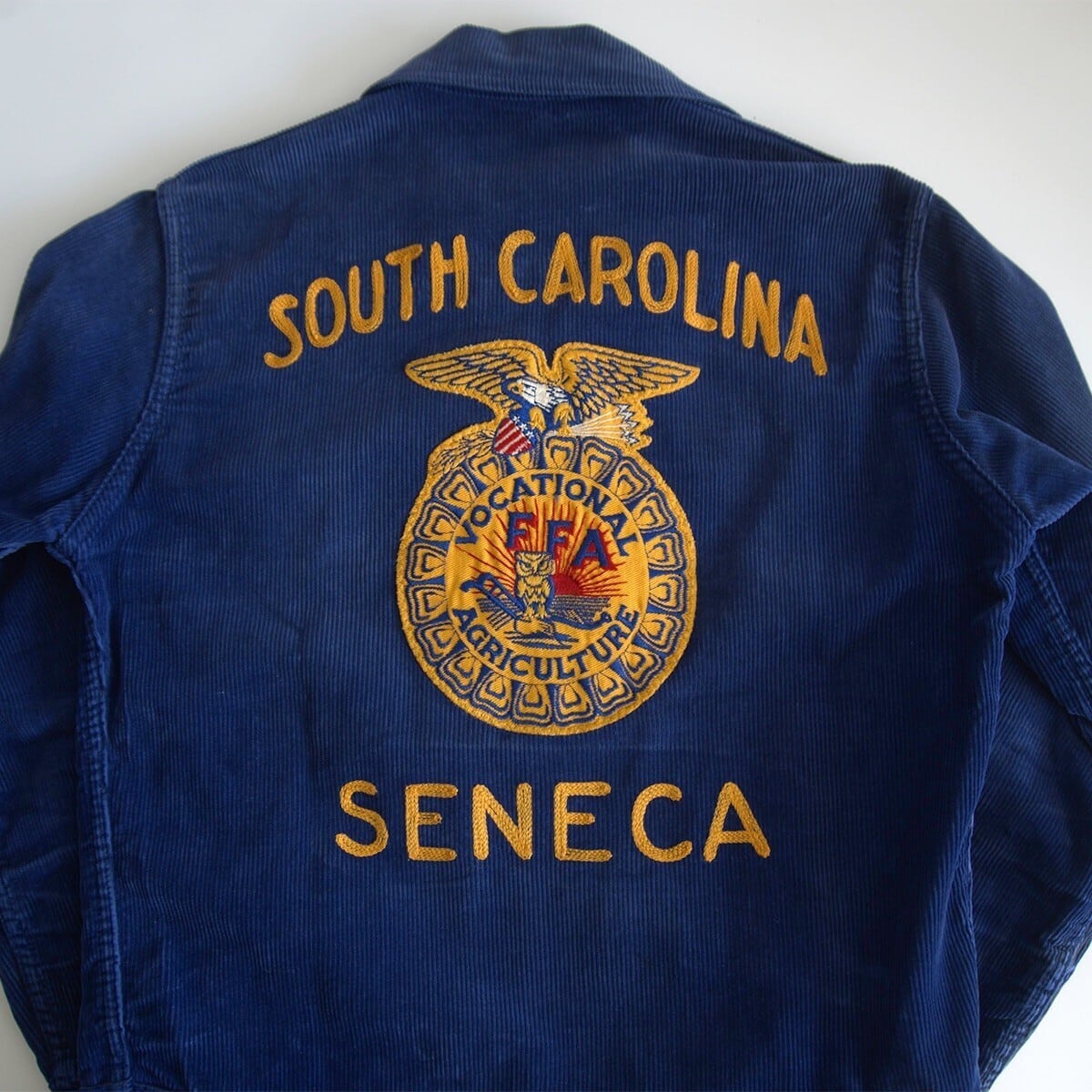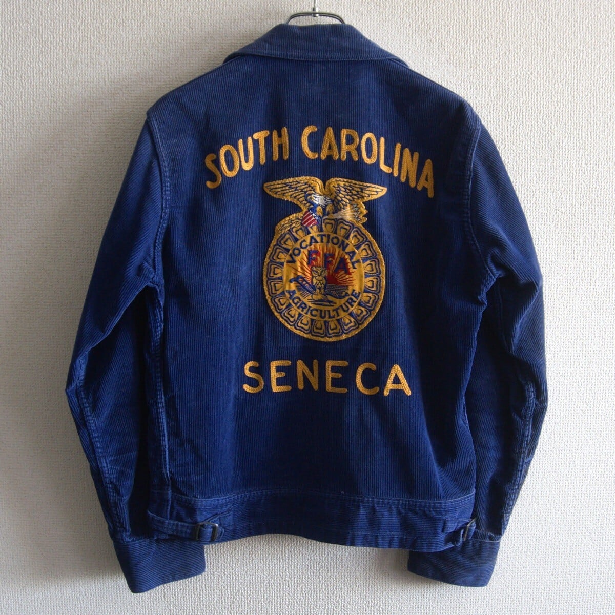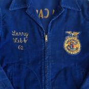 FFAとはFuture Farmars of Americaの頭文字をとった略称でアメリカ合衆国学校農業クラブ連盟のことを指します、『みんなでアメリカの農業の未来を考えていきましょう』という意味になります。その団体のユニフォームとして使用されていたのがこのFFAジャケットです。カラーは紺をベースに前後にはFFAのワッペン後ろにはワッペンの上に各州のチェーンステッチが入っています。お探しの方や気になる方は是非。