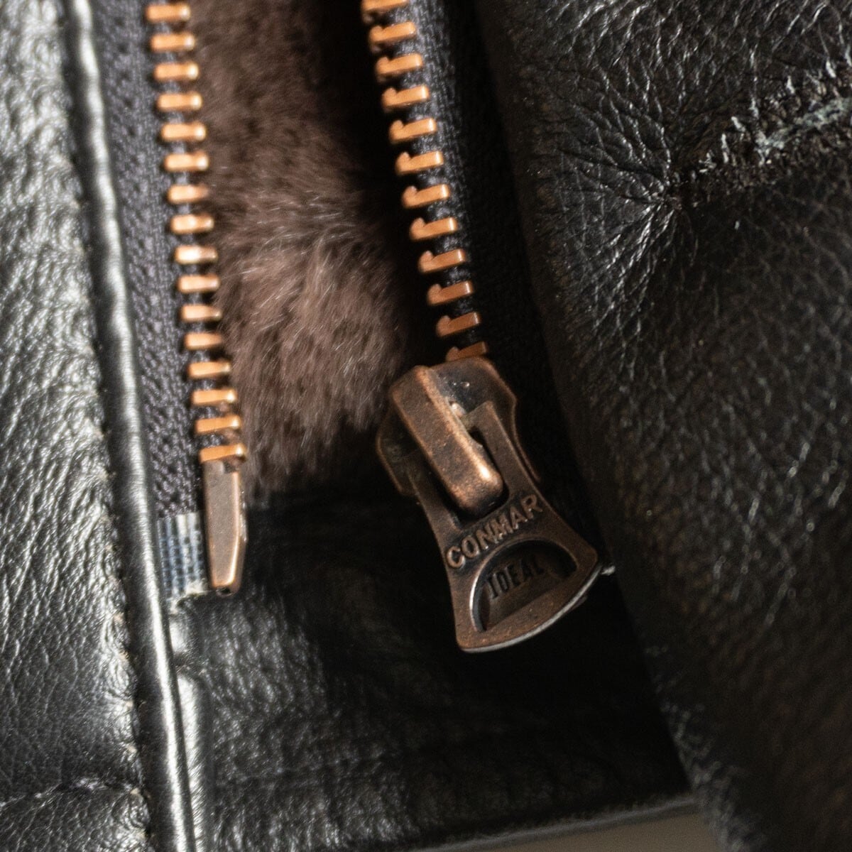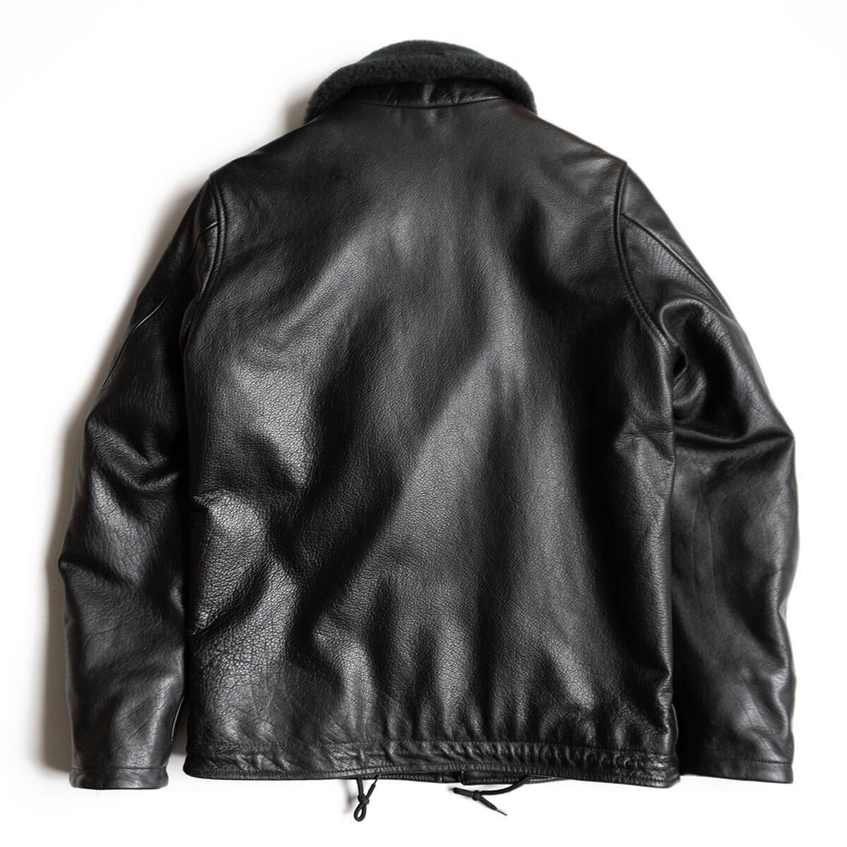 厚手で重厚なカウレザーを使用した1着。首元のチンストラップや襟、ファスナーとボタンのダブルフロントなど、N-1デッキジャケットのディテールはそのままに、襟にはムートンボア、裏地には肌触りの良いポリエステルボアを採用することで防寒性の高い仕上がりです。お探しの方や気になる方は是非。
