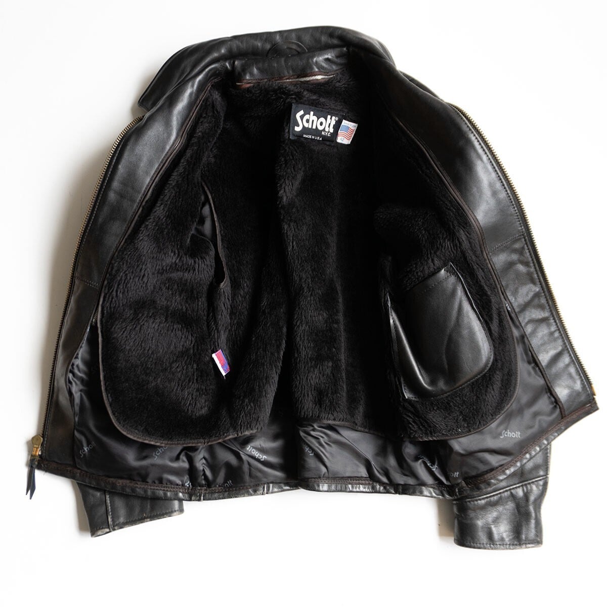 【雰囲気抜群/ビッグサイズ】SCHOTT【AT101/シングルライダースジャケット】42 襟 レザー アメリカ製 ショット 25101100