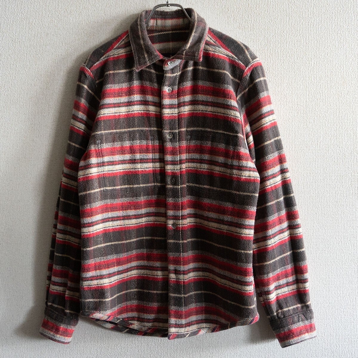 リバーシブルで着用が可能なヘビーフランネルコットン生地のシャツです。チェック柄、ボーダー柄の2パターンで着用ができます。