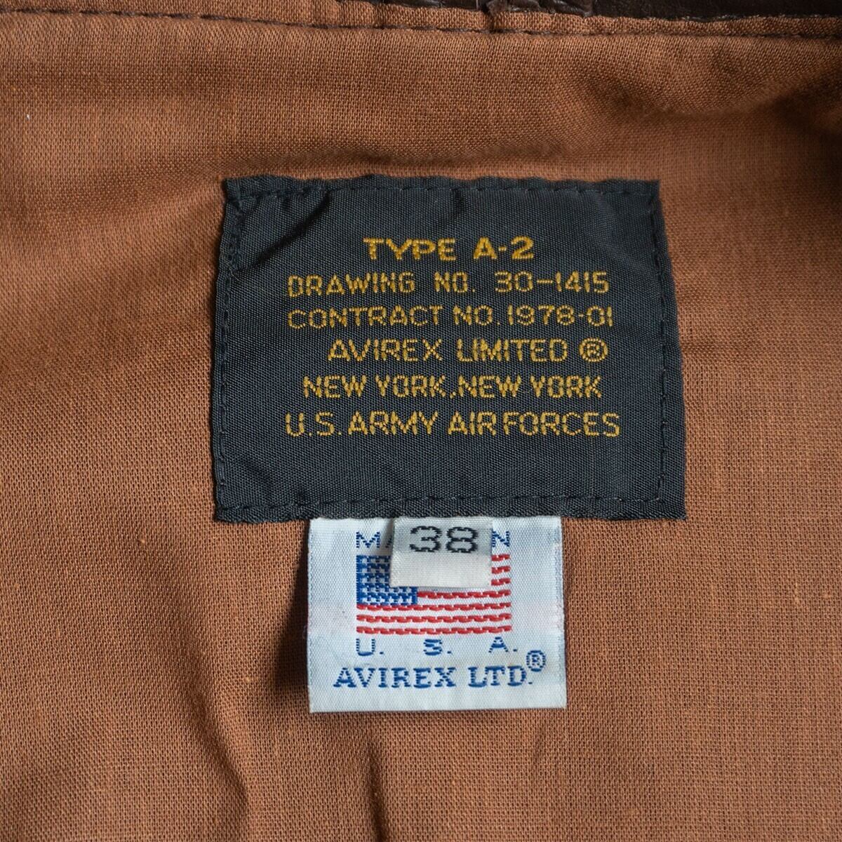 【美品】AVIREX【A-2 ホースハイド フライトジャケット】 38 ブラウン レザー アビレックス 25101209