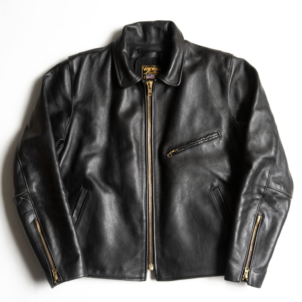 【雰囲気抜群/ビッグサイズ】 VANSON 【ENF エンフィールド シングル ライダース ジャケット】44 レザー USA製 バンソン 25101216