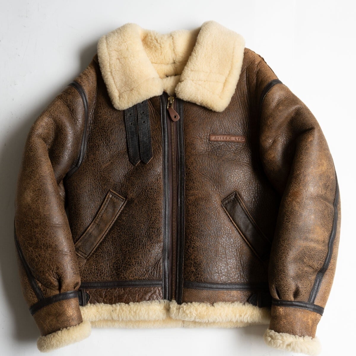 【胸ロゴ】AVIREX【B-3 ムートンボンバージャケット】40 ブラウン アヴィレックス フライト レザー ジャケット 25101159