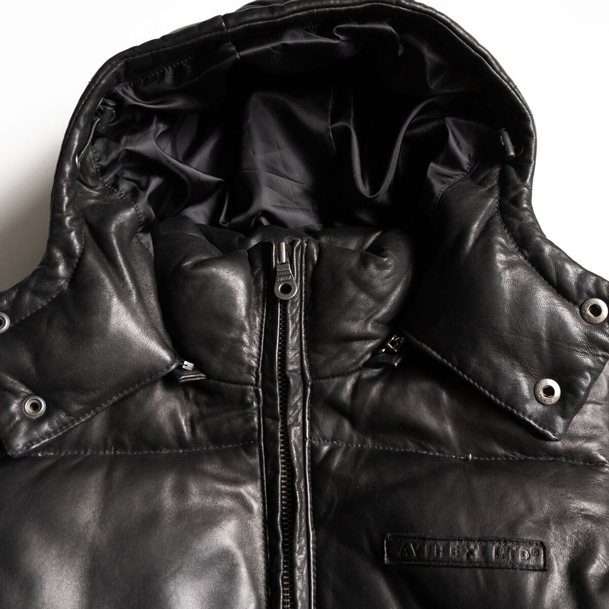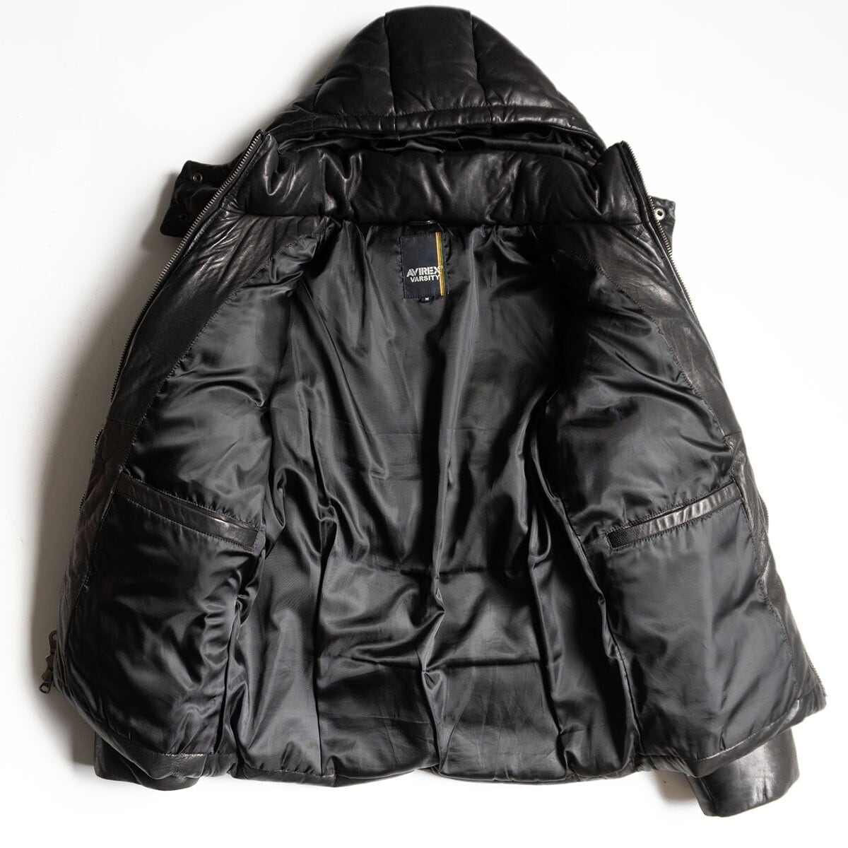 【美品】AVIREX【レザー ダウン ジャケット】M ブラック アヴィレックス 25101267