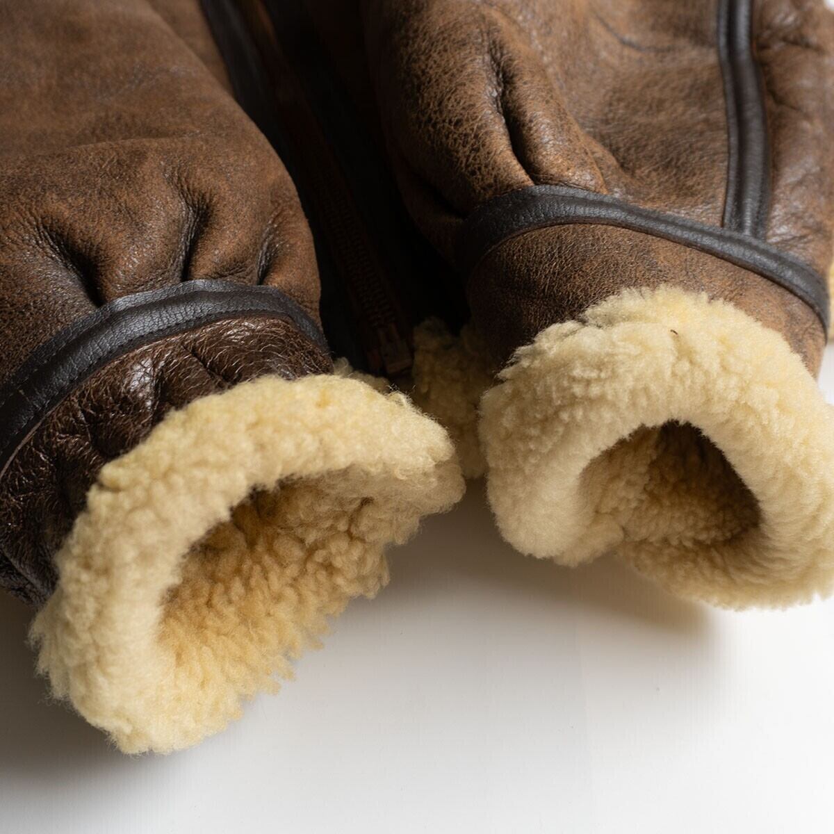 ボディには肉厚ながらモチっとした弾力性を持つ上質のシープスキン(羊革)が使用されております。裏地にはふかふかのムートンボアが敷き詰められ最高の着心地・防寒性を誇ります。良いものをお探しの方は是非。