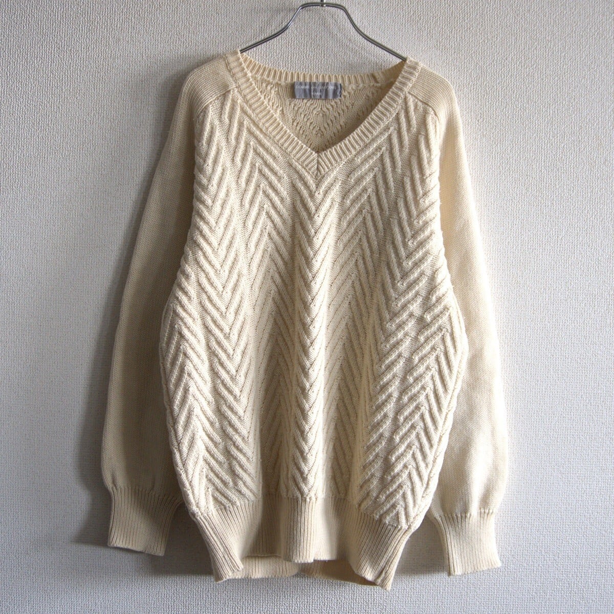 【80S】COMME des GARCONS HOMME 【80年代 ケーブルニット Vネック セーター】 ニット ギャルソン オム 25101065