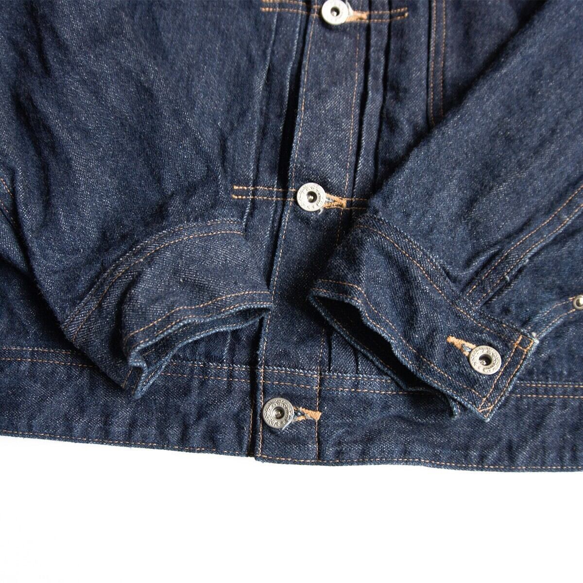 新開発した大戦カウボーイパンツのデニムを使用したジャケットとなります。当時の生産数も圧倒的に少なかったため、実存するヴィンテージが大変希少といわれる「カウボーイジャケット」ですが、その大戦時モデルの月桂樹ボタンが付くものはさらに希少です。パンツ同様、ジャケットも「ライダース」と名称が変更される戦後に、大きくそのデザインは変更されました。ワークウェア然としたボックスシルエットがシェイプされ、よりスリムなスタイルになっています。お探しの方は是非。