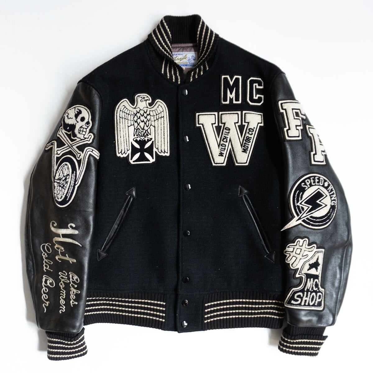 レザースリーブ仕様のスタジャン。雰囲気や風合いも抜群の一着です。
