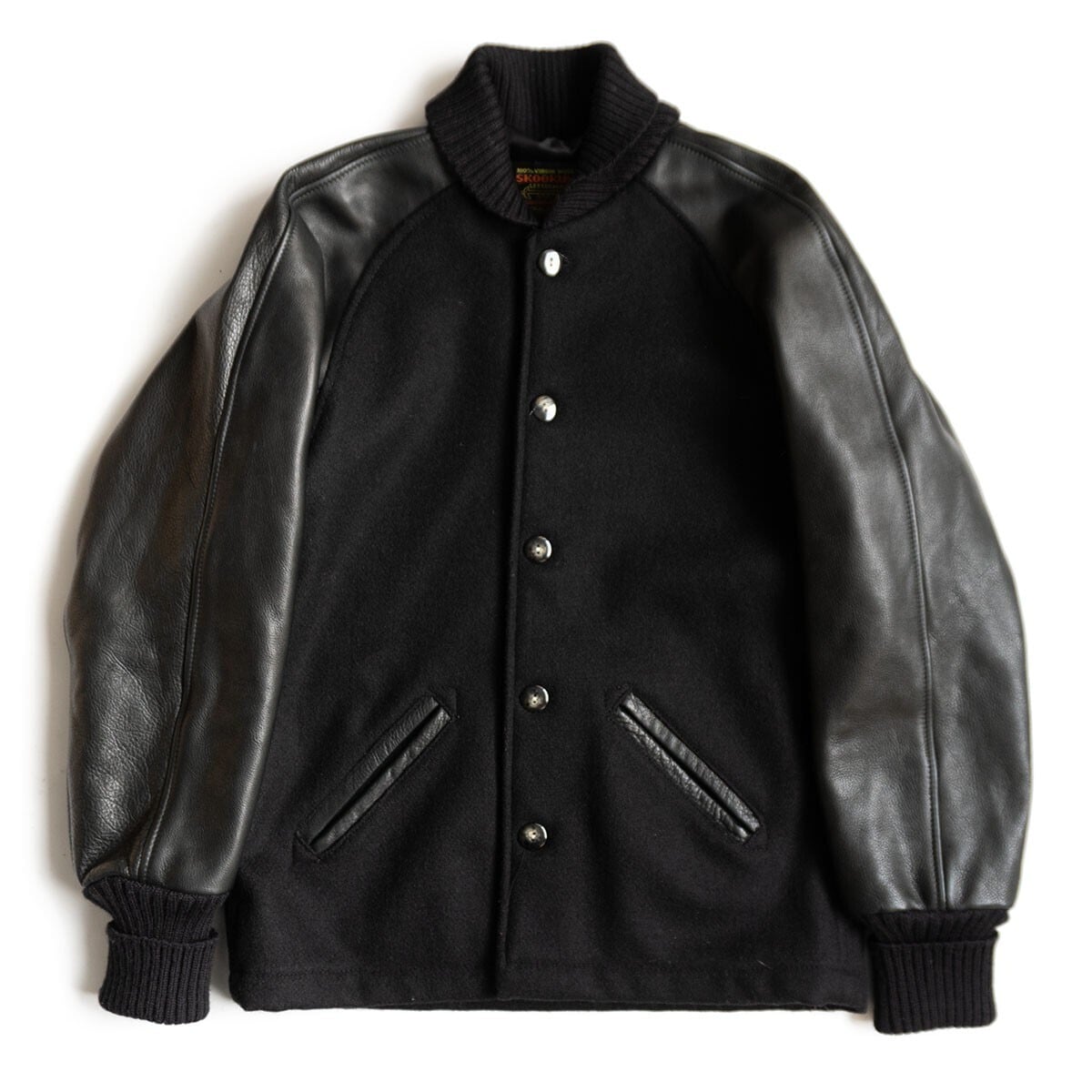【美品】SKOOKUM【メルトン×レザー スタジャン】38 スクーカム ブラック ジャケット 25110052