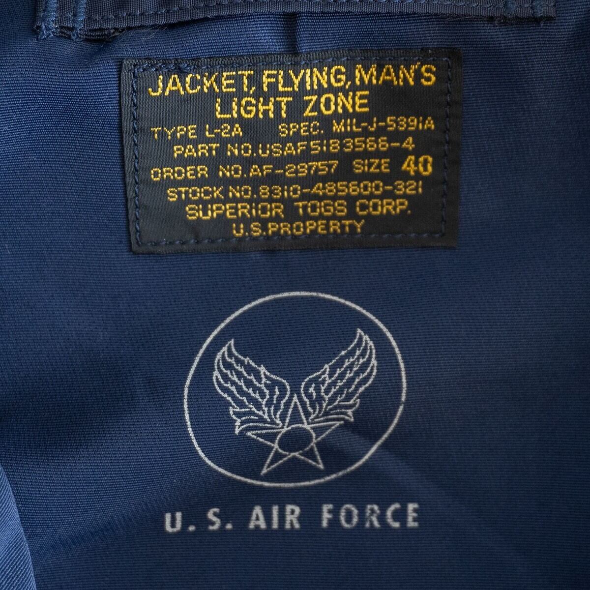 朝鮮戦争の最中、1950年代初期にタイプL-2(Spec.MIL-J-5391)の改良モデルとして採用されたのがタイプL-2A(Spec.MIL-J-5391A)。USAAF(米陸軍航空隊)からUSAF(米空軍)に独立し、そのUSAFのシンボルカラーであるエアフォースブルーを採用しているのが特徴。お探しの方や気になる方は是非。