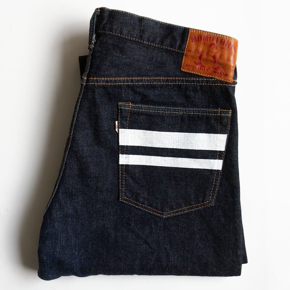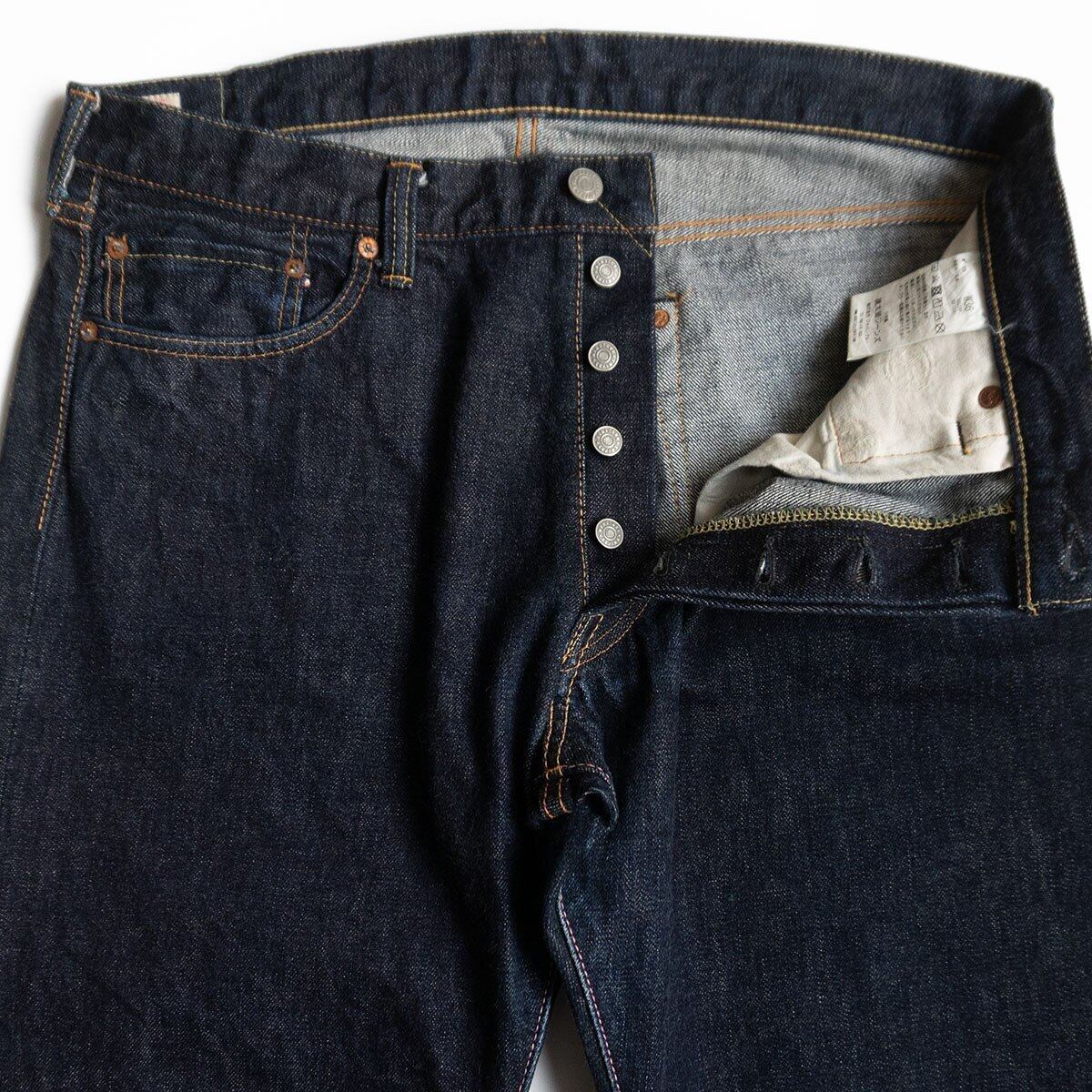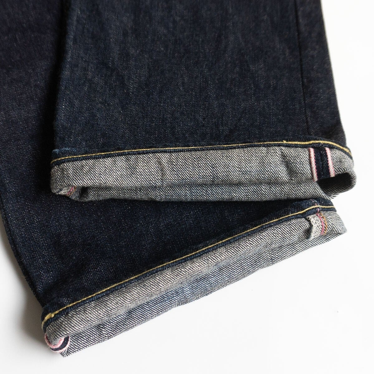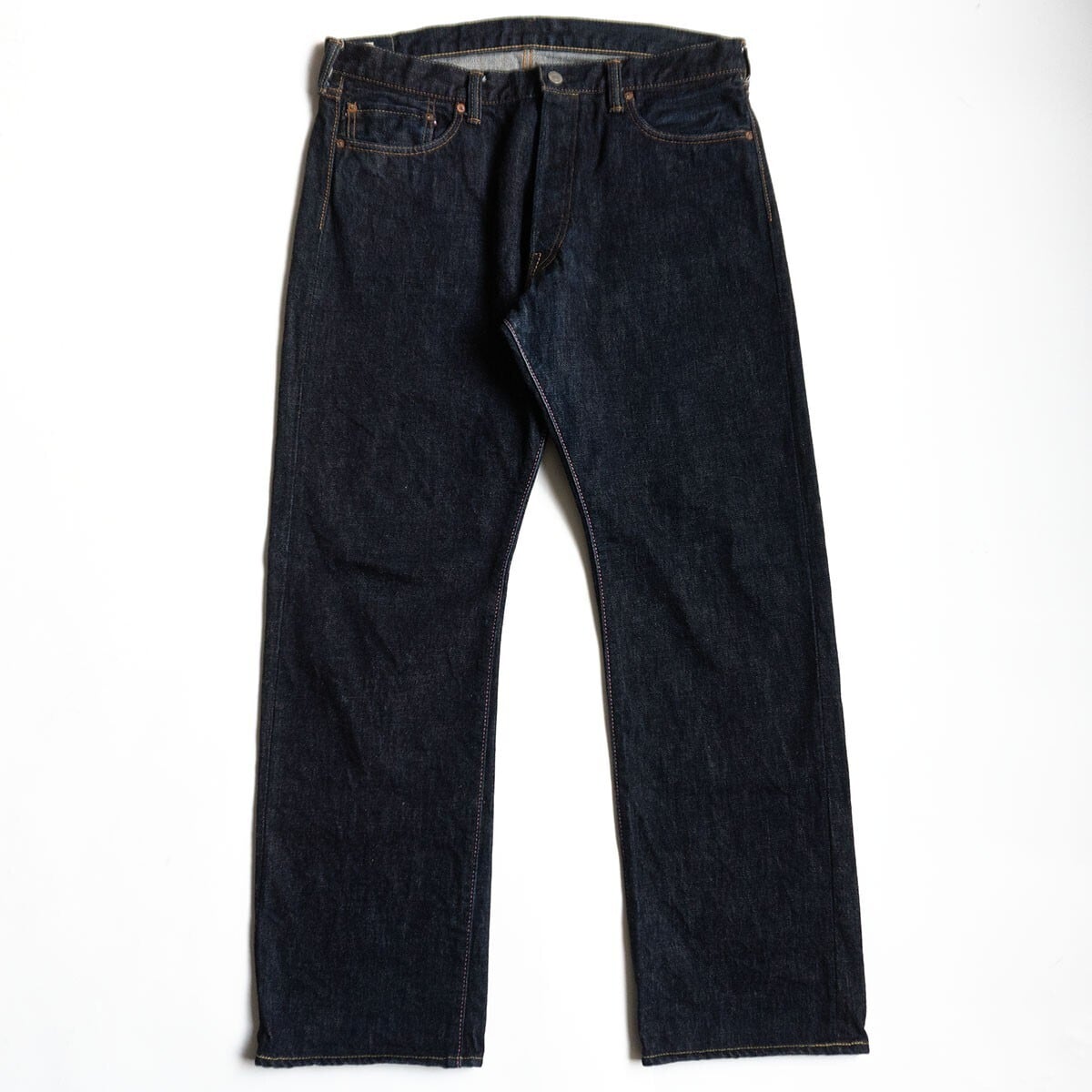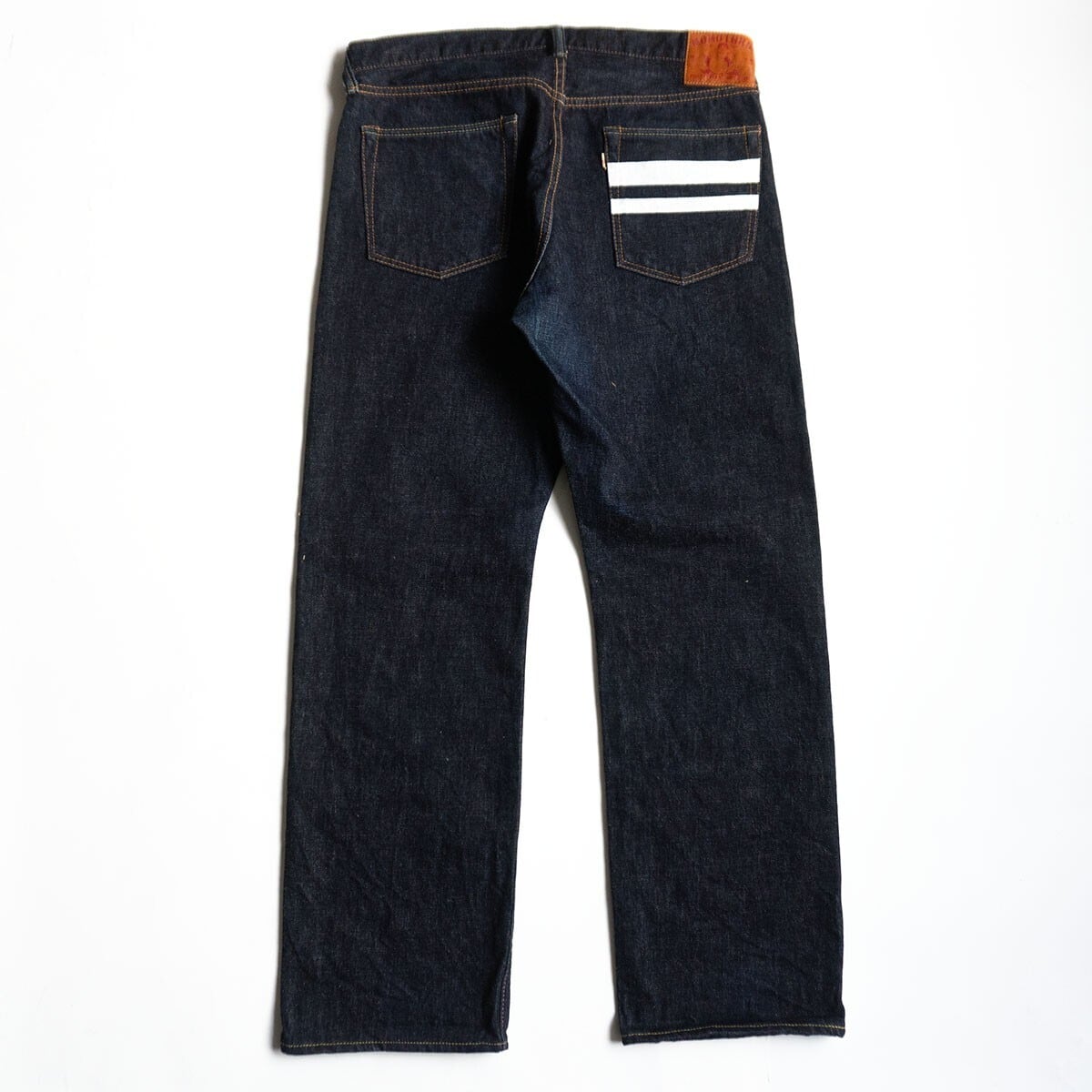 ロープ染色を繰り返し特濃インディゴブルーに染めたジンバブエコットン使用した1本。モモからスソまでは若干のゆとりを持たせたミドルフィットです。これから経年変化をお楽しみいただけます。