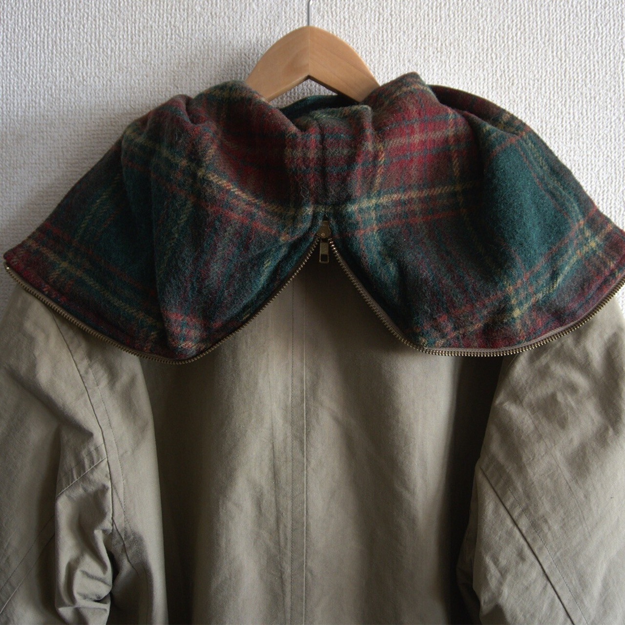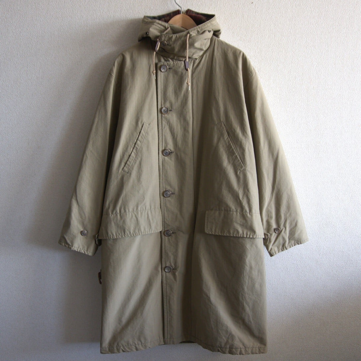 90年代頃のマウンテンコートです。裏地はウール素材のチェック柄でございます。