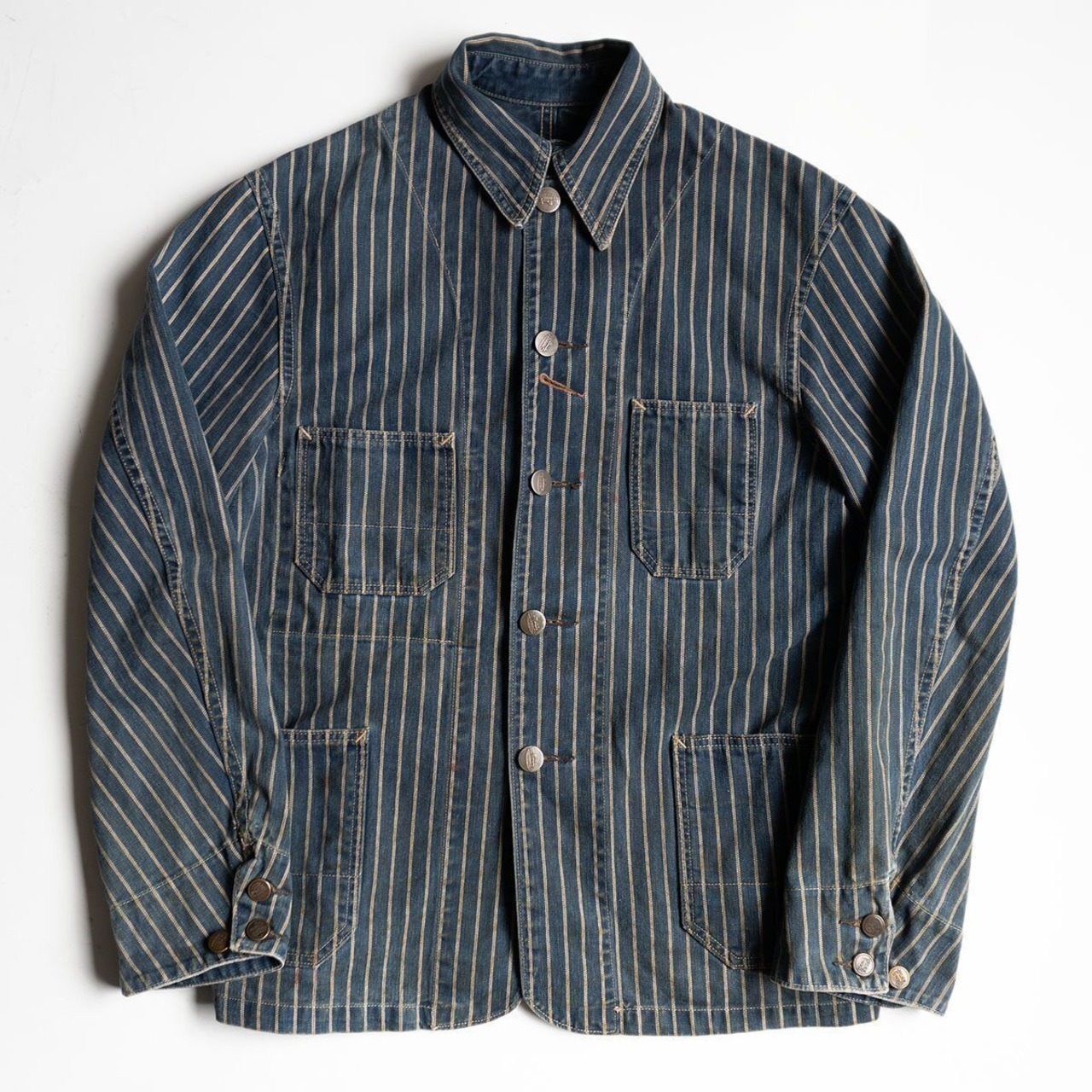 全体的にヴィンテージ加工を施した雰囲気溢れる一着。フロントは全てチェンジボタンが使われており首周りにはチンストが付きます。ダブルウォバッシュのスペシャルな逸品です。お探しの方や気になる方は是非。