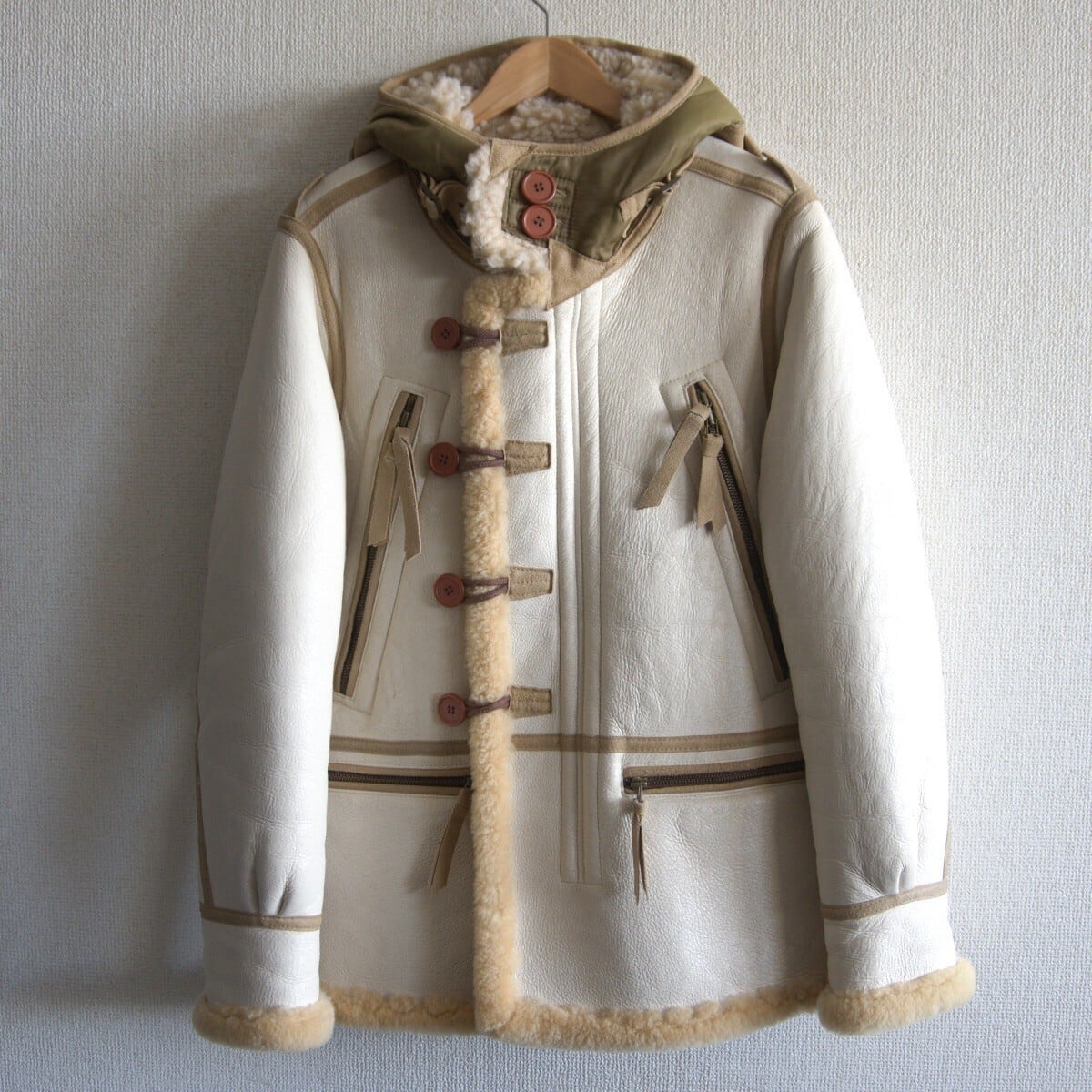 ボディには肉厚ながらモチっとした弾力性を持つ上質のシープスキン(羊革)が使用されております。裏地にはふかふかのムートンボアが敷き詰められ最高の着心地・防寒性を誇りますお探しの方や気になる方は是非。