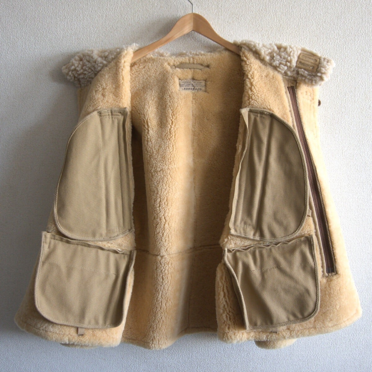 【美品】AVIREX【B-7 ムートン アラスカンコート】M ベージュ フライト レザー ジャケット フード アビレックス 25110019