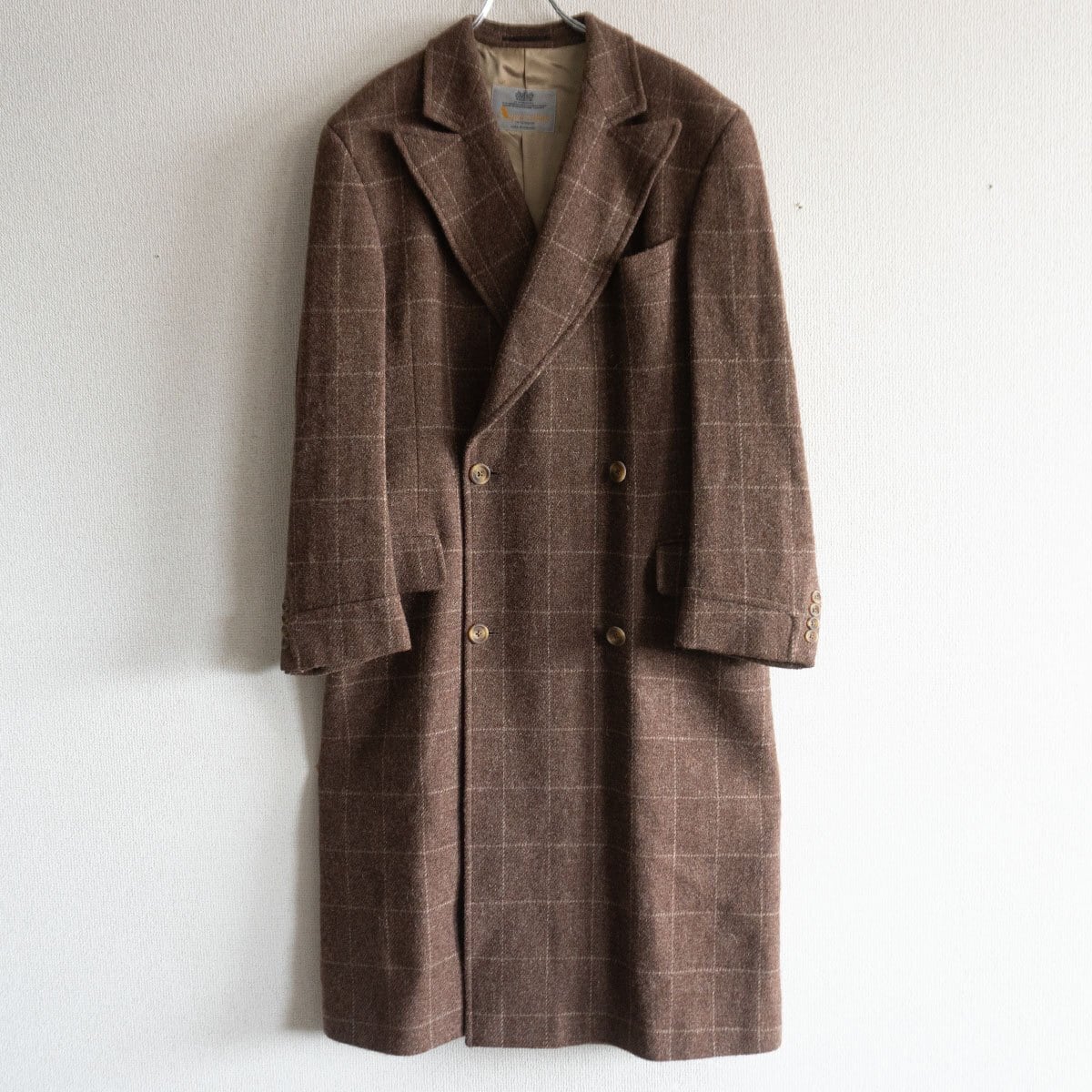 【80s~90s】AQUASCUTUM【ツイード ダブル コート】REG 38 イングランド製 アクアスキュータム 25110087