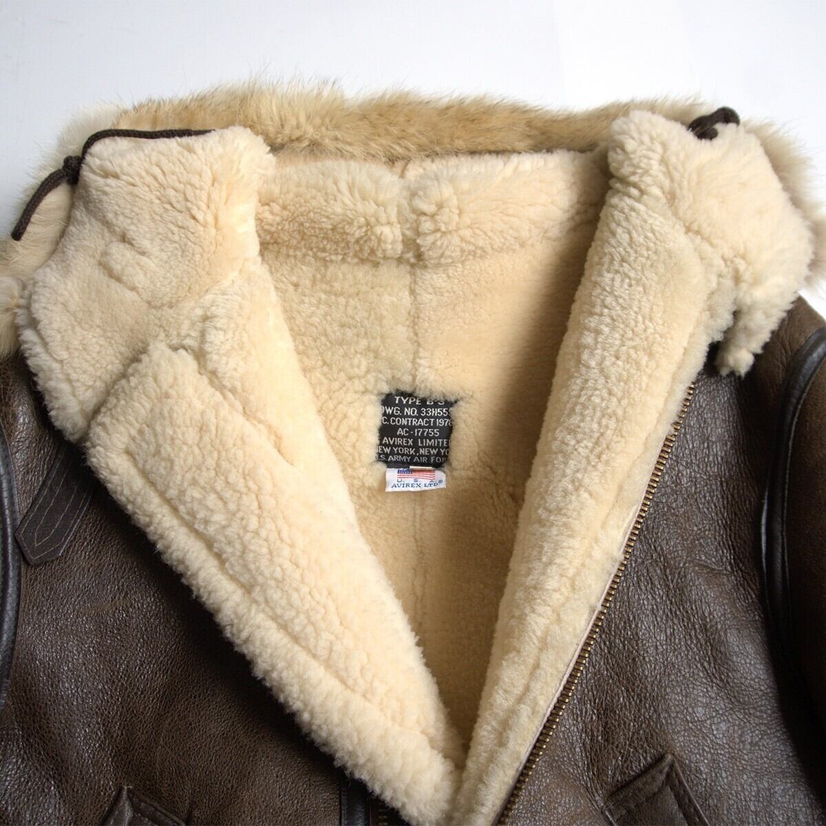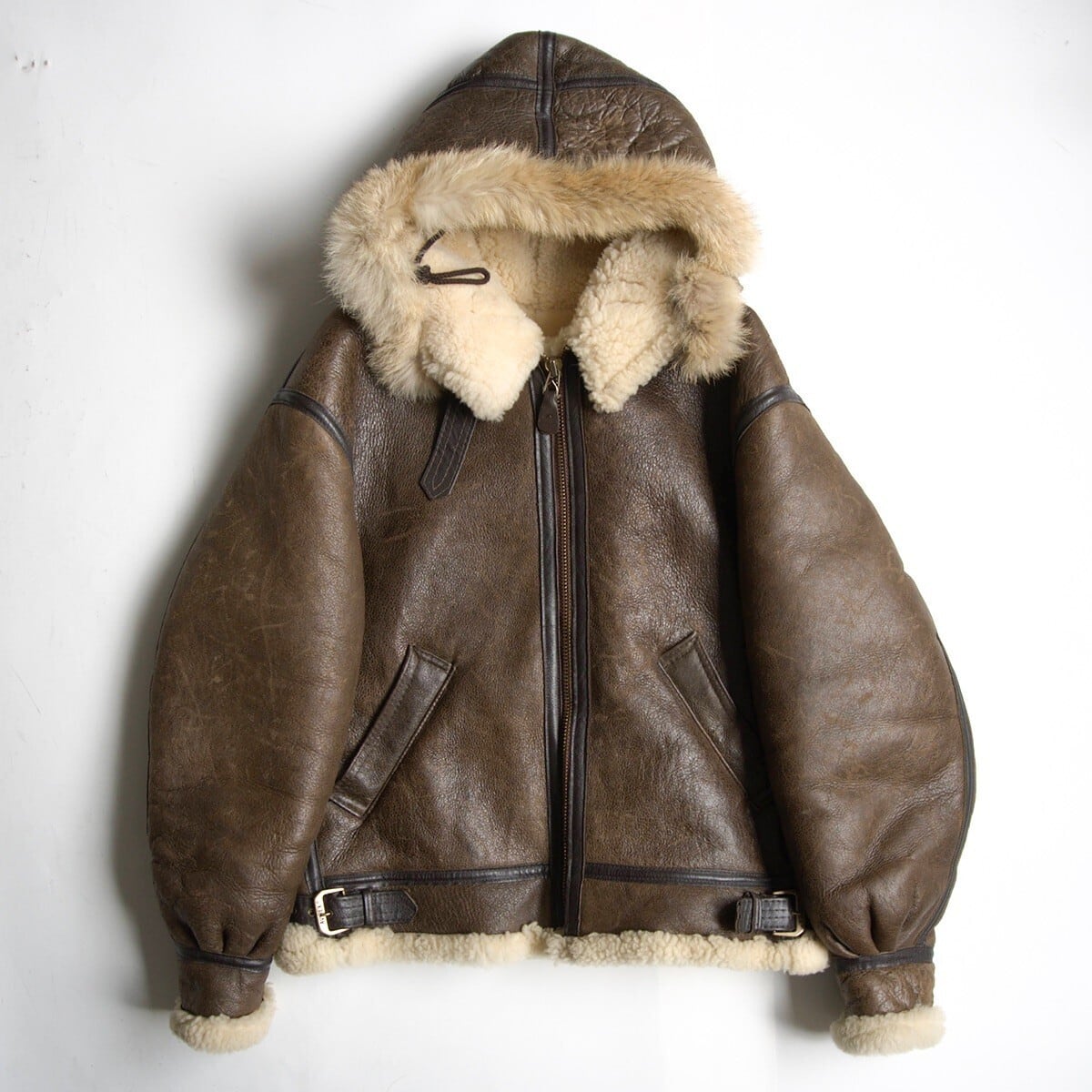 【美品/フード付き】AVIREX【B-3 ムートンボンバージャケット】38 ブラウン アヴィレックス フライト レザー ジャケット 25110141