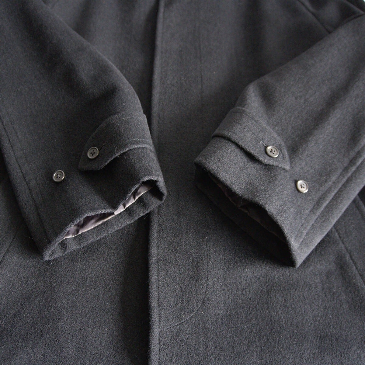 ウール素材を使用したステンカラーコート。お色はブラックです。お探しの方や気になる方は是非。
