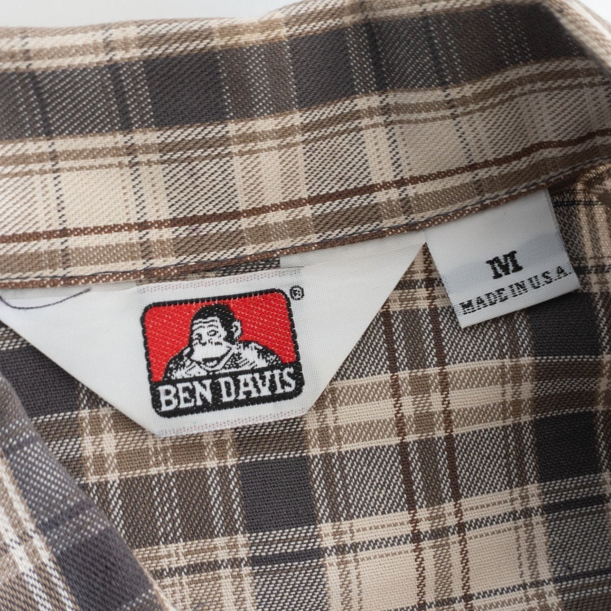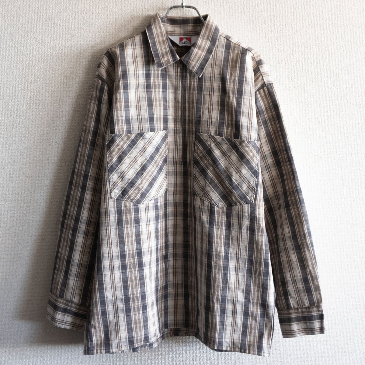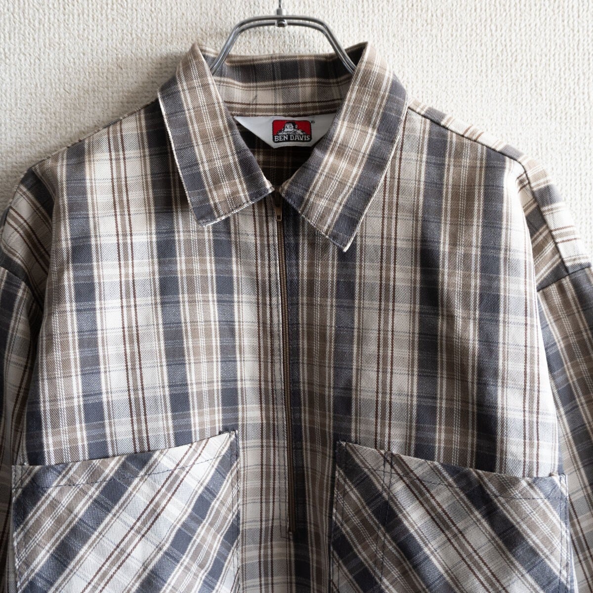 【美品/USA製】BEN DAVIS【ハーフジップ チェック シャツ】M ベンデイビス 25110194