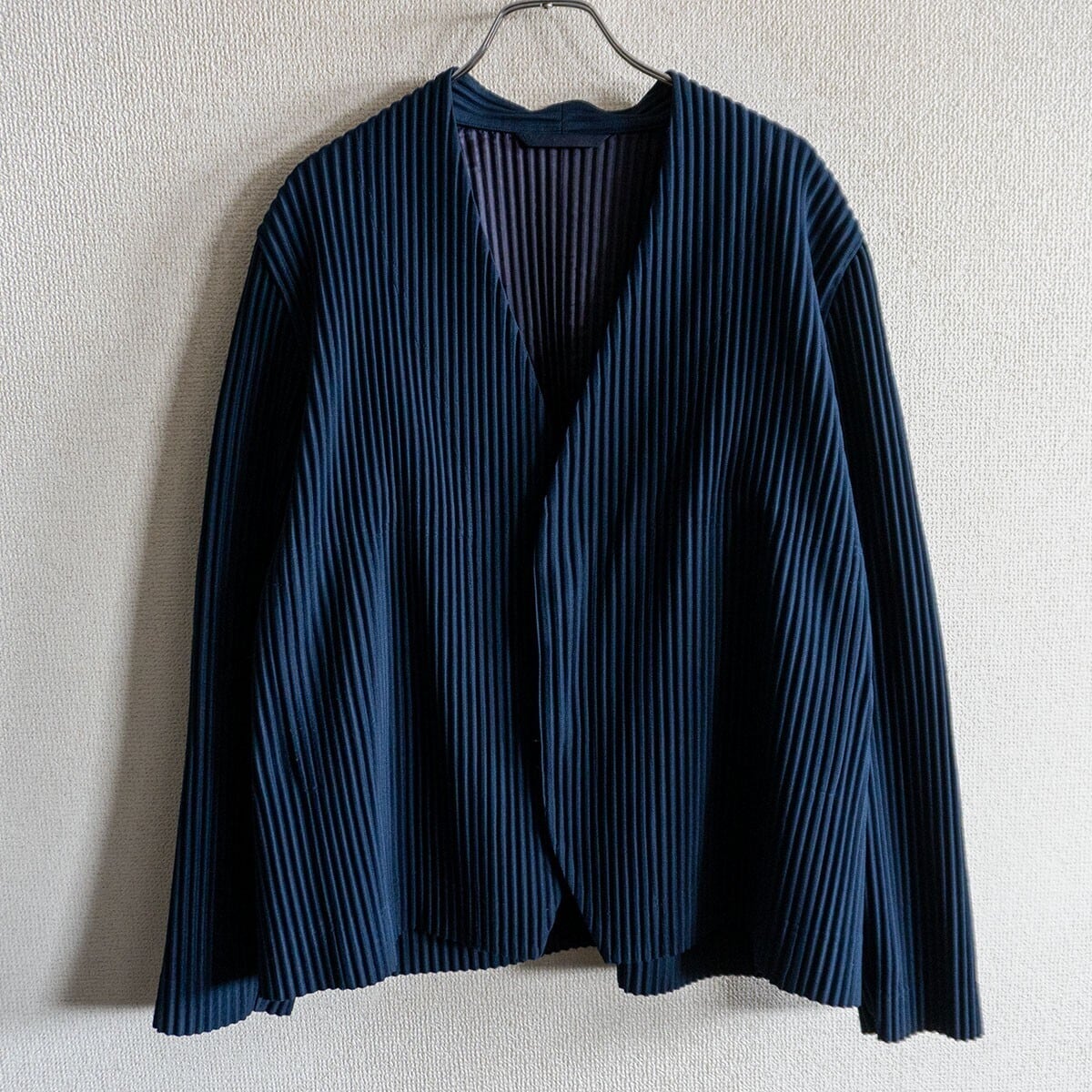 【美品】 HOMME PLISSE ISSEY MIYAKE【プリーツ ノーカラー ジャケット】2 ネイビー オムプリッセ イッセイミヤケ 25110204
