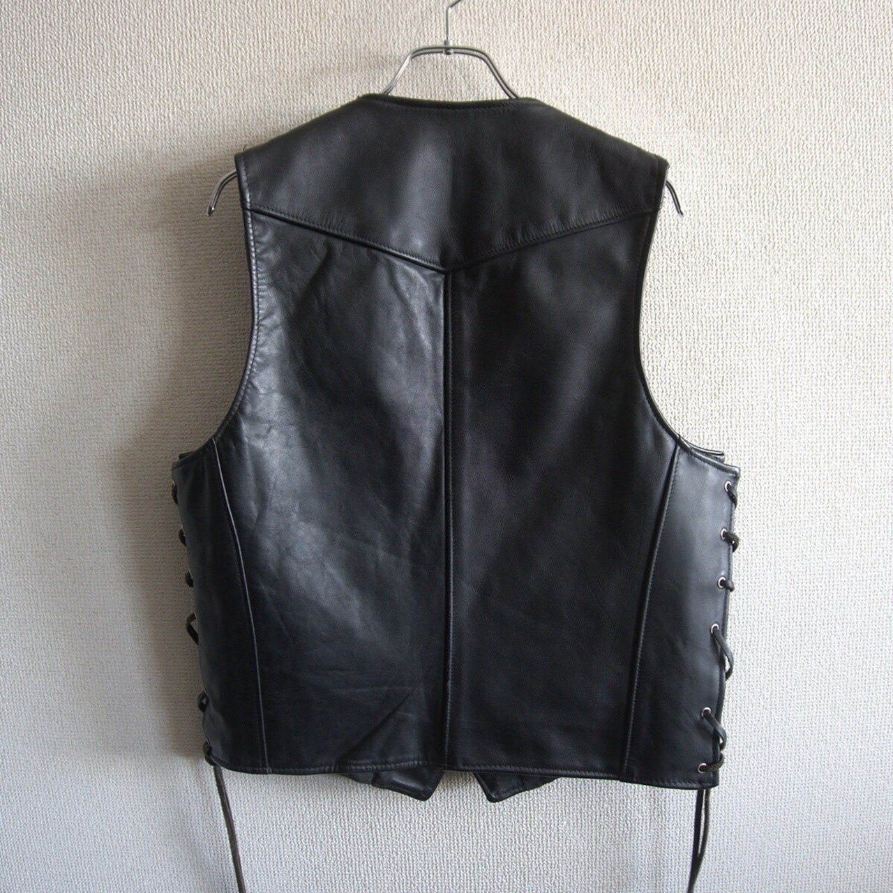 両サイドが編み上げ仕様のレザーベストです。お探しの方や気になる方は是非。