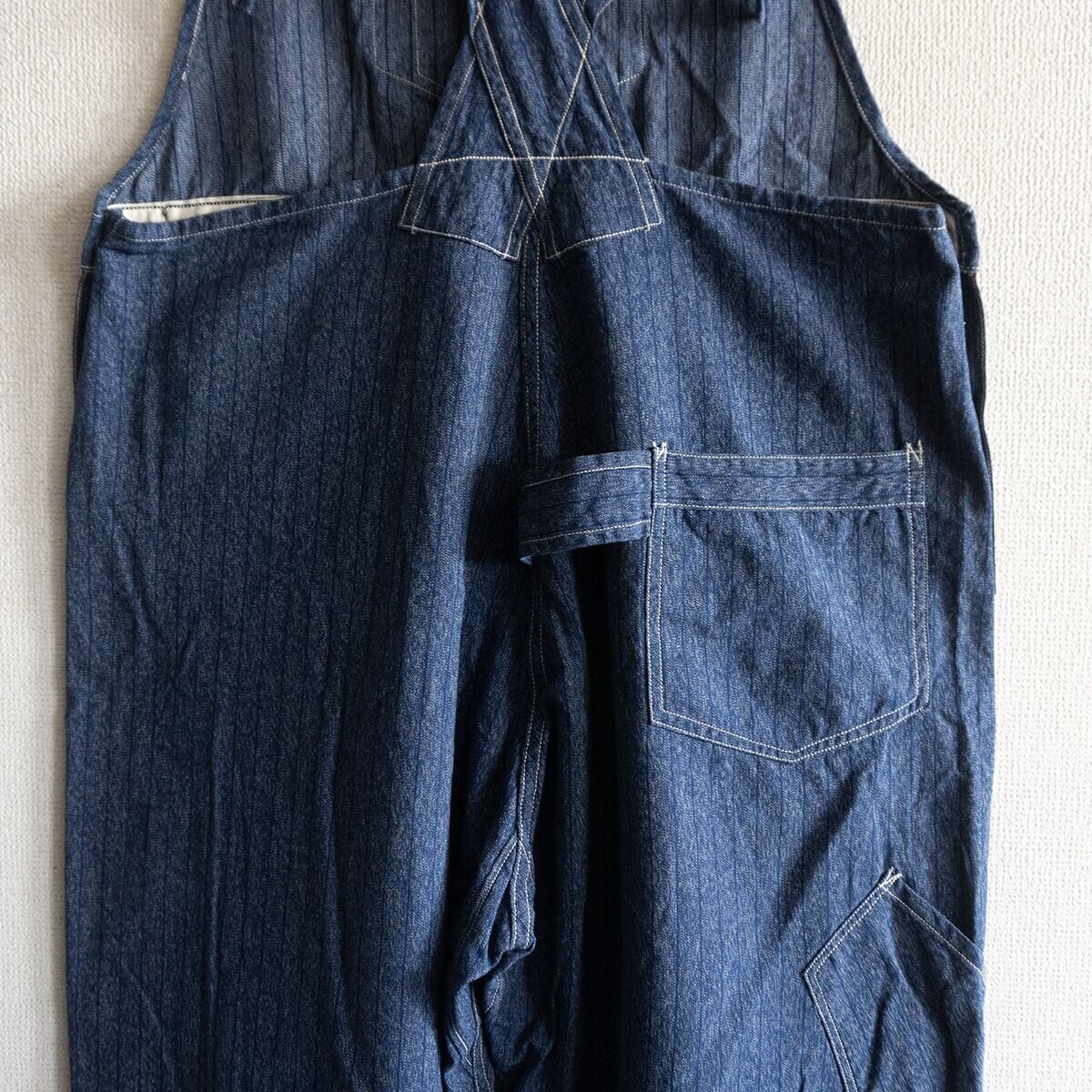 1910~1920年代のヴィンテージを元にしたオーバーオール。マテリアルはコットン100%の杢ランダムストライプ生地を使用しております。