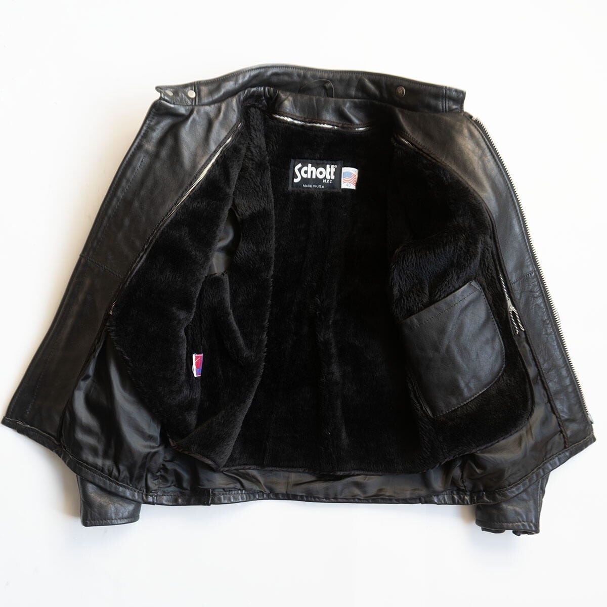 【美品】SCHOTT【641/シングルライダースジャケット】40 ボアライナー付き レザー アメリカ製 ショット 25110326