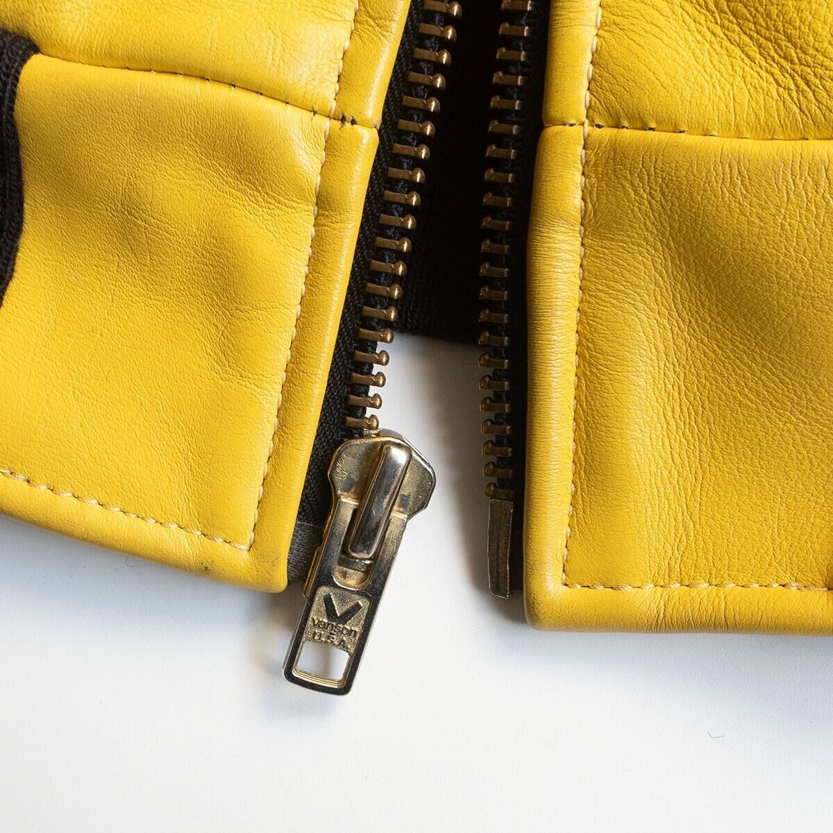 【美品】 VANSON 【TJV オールレザー スタジャン】40 イエロー ブラック ジャケット ワッペン USA製 バンソン 25110278
