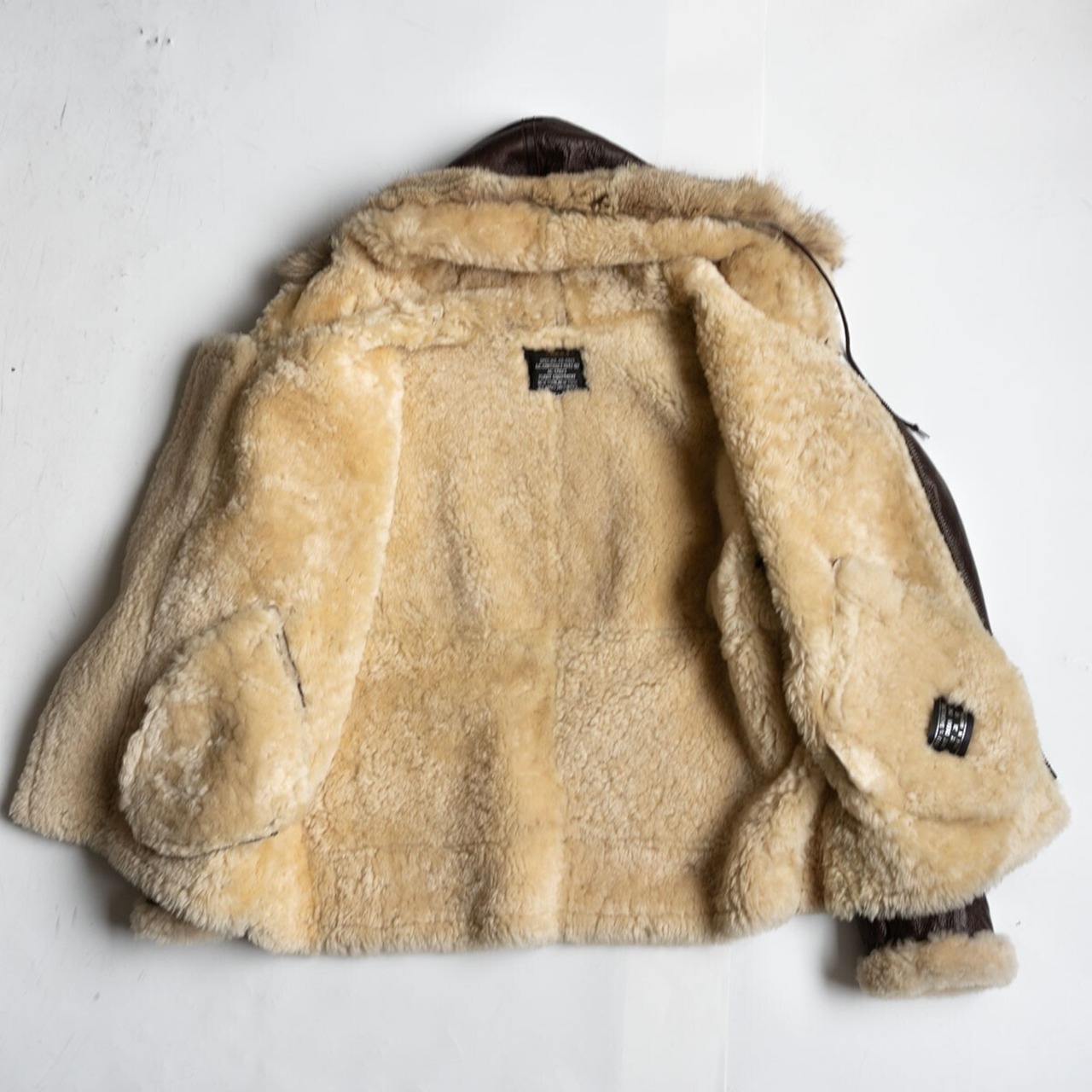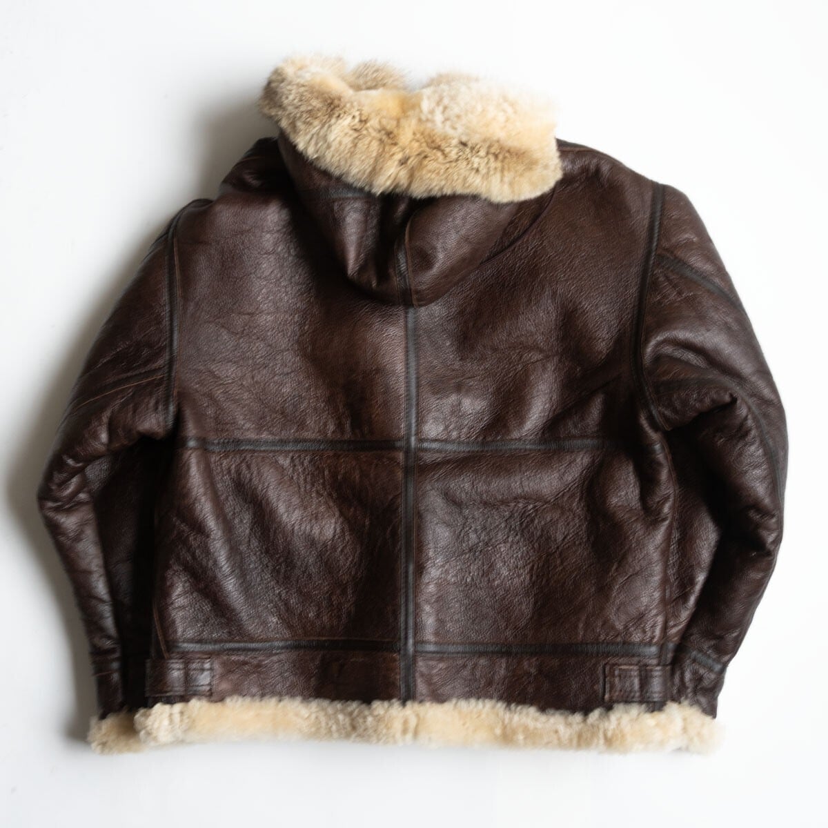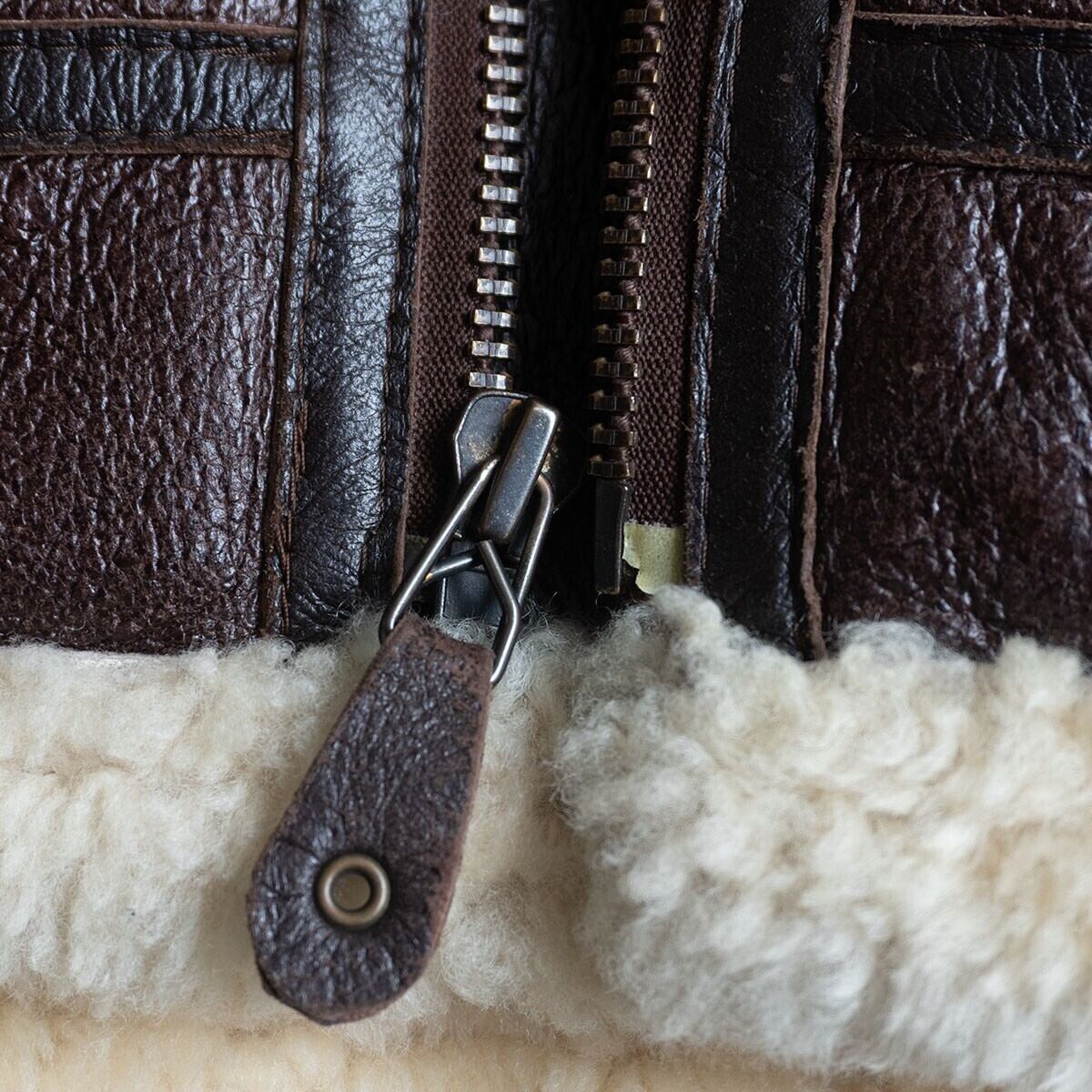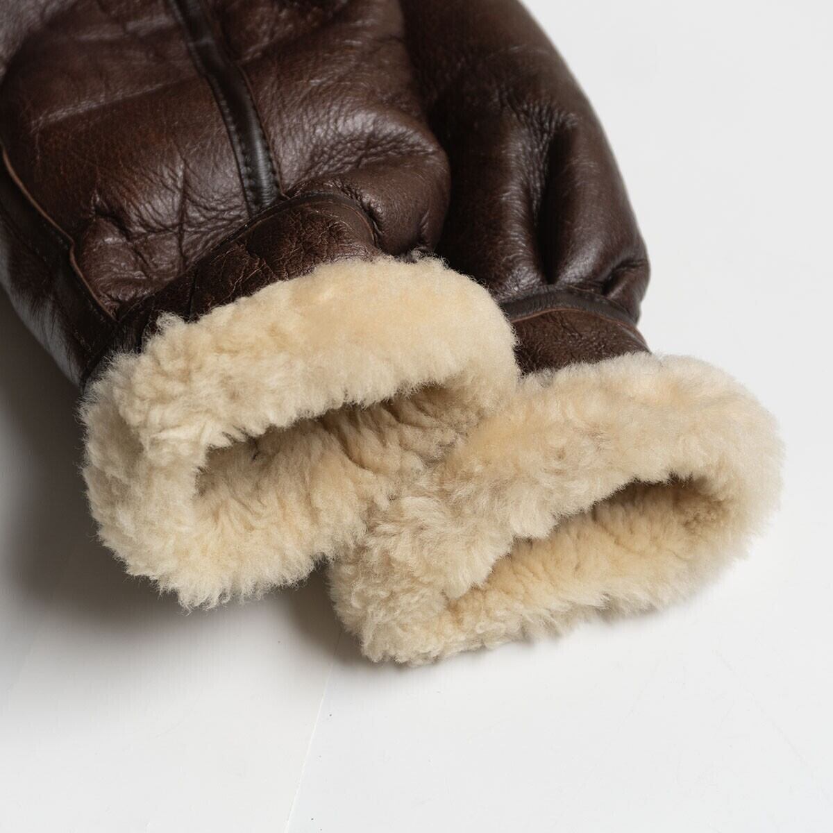 ボディには肉厚ながらモチっとした弾力性を持つ上質のシープスキン(羊革)が使用されております。裏地にはふかふかのムートンボアが敷き詰められ最高の着心地・防寒性を誇ります。