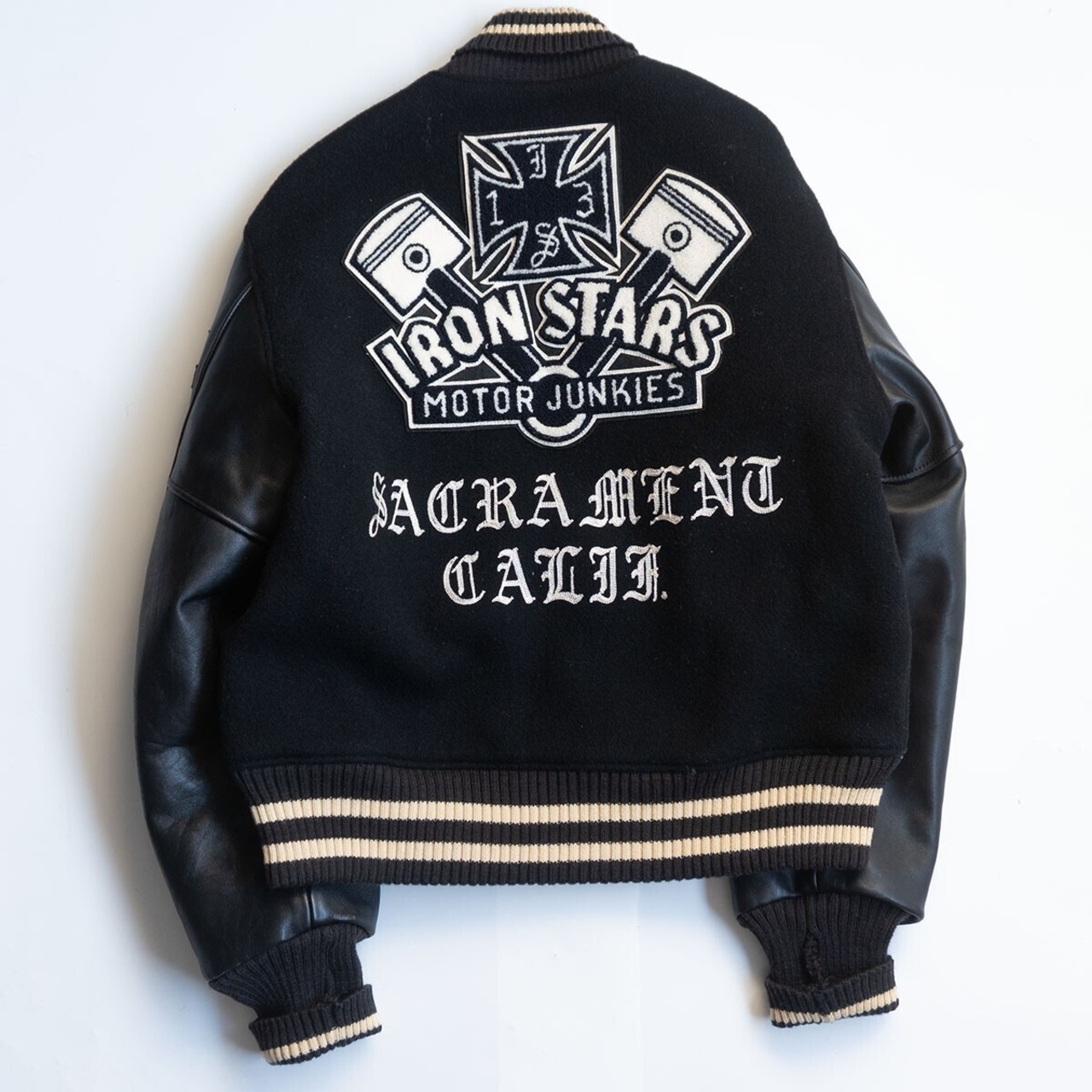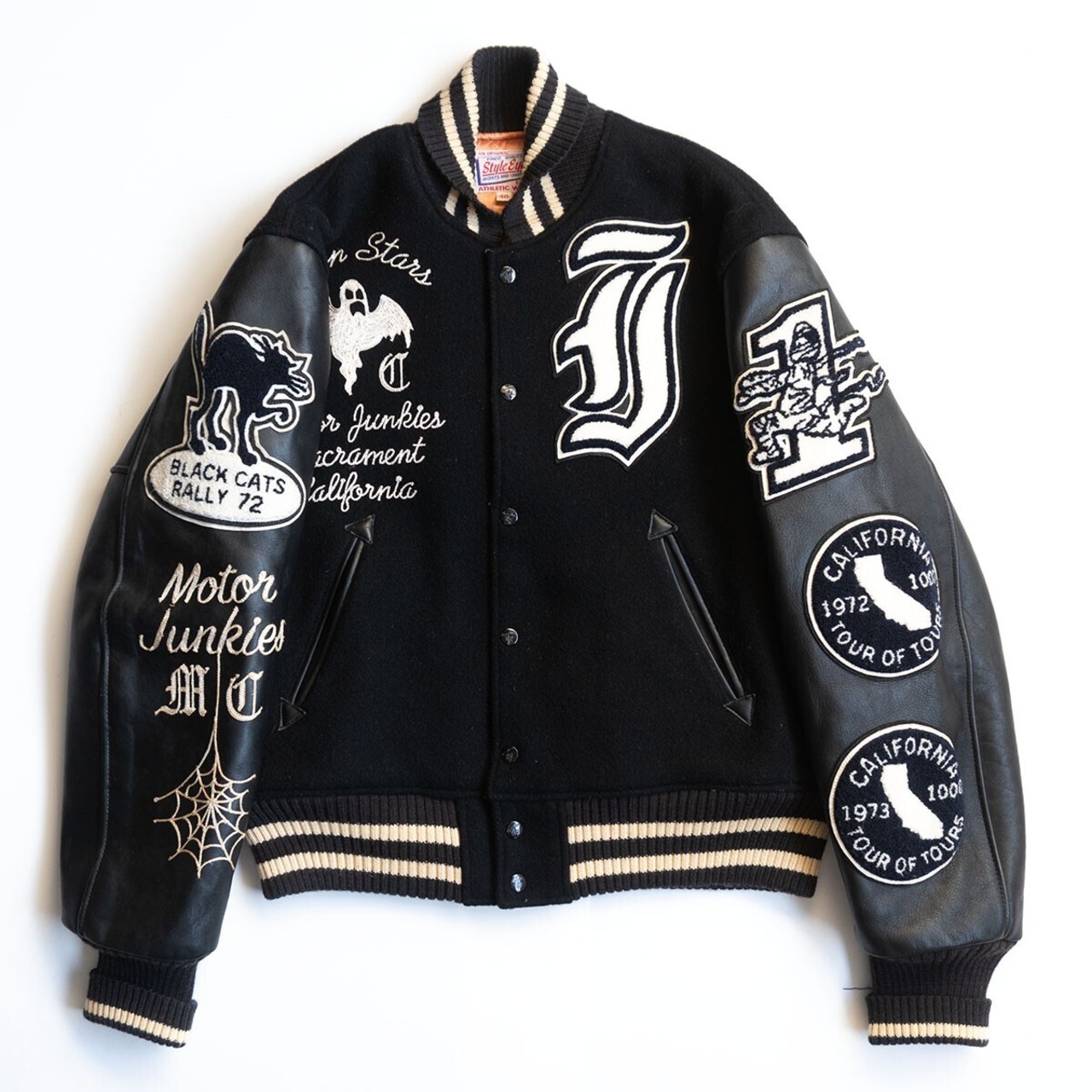 豪華なフルデコのレザースリーブスタジャン。雰囲気や風合いも抜群の一着です。お探しの方や気になる方は是非。