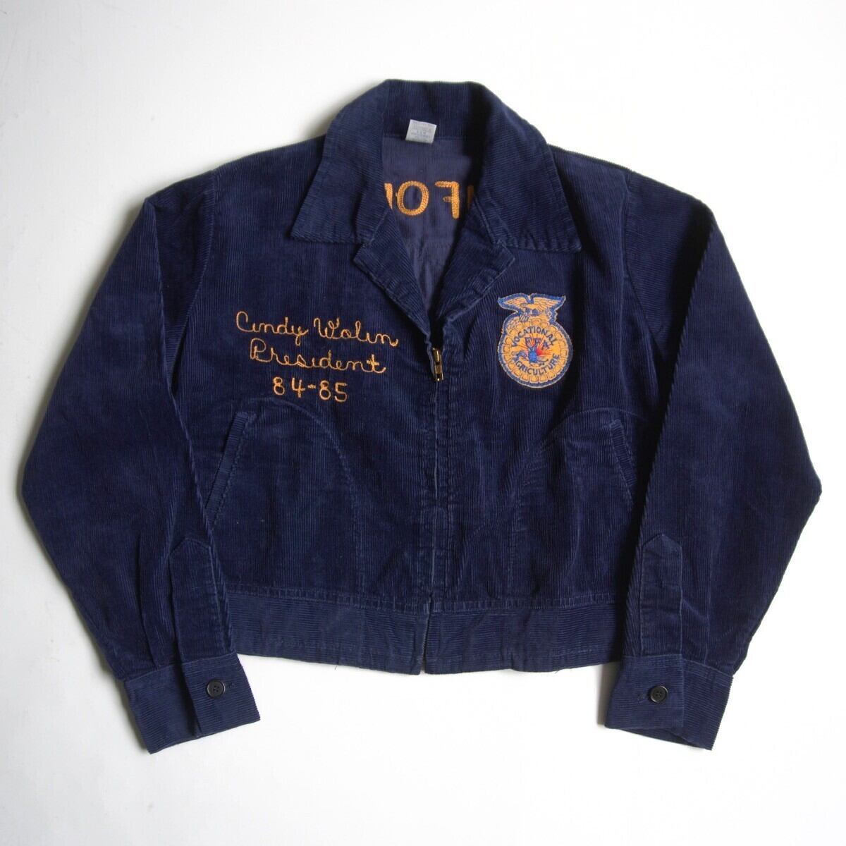 FFAとはFuture Farmars of Americaの頭文字をとった略称でアメリカ合衆国学校農業クラブ連盟のことを指します、『みんなでアメリカの農業の未来を考えていきましょう』という意味になります。その団体のユニフォームとして使用されていたのがこのFFAジャケットです。カラーは紺をベースに前後にはFFAのワッペン後ろにはワッペンの上に各州のチェーンステッチが入っています。お探しの方や気になる方は是非。