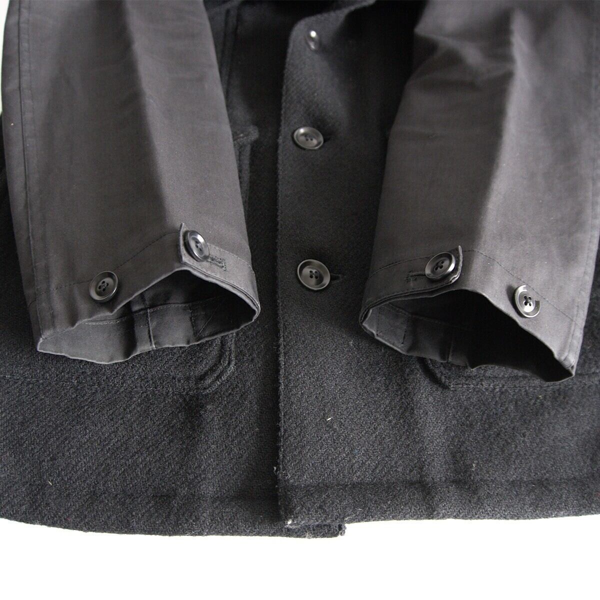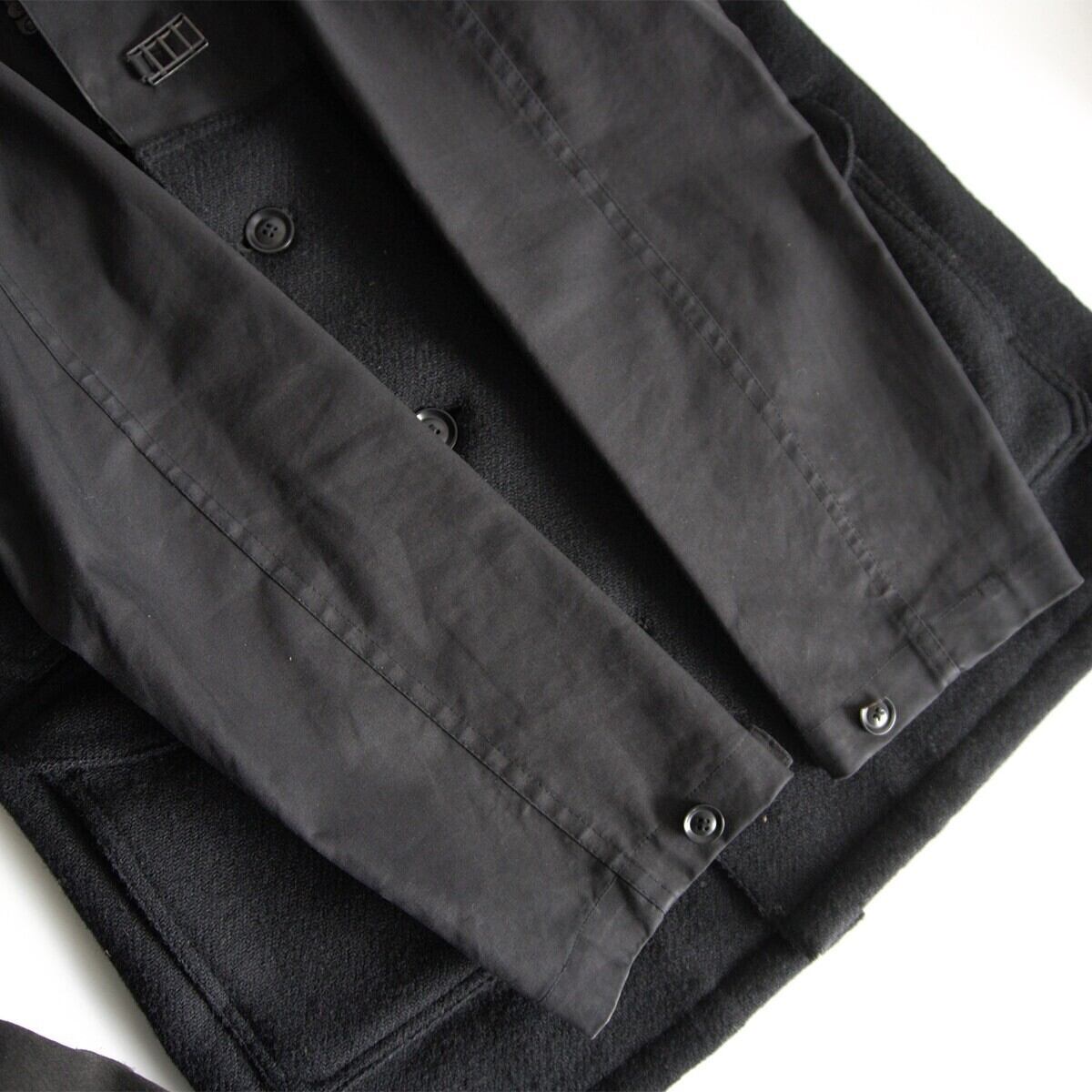 マッキントッシュクロスとハリスツイードコンビのカメラマンジャケットです。希少なサイズ50、オールブラックです。
