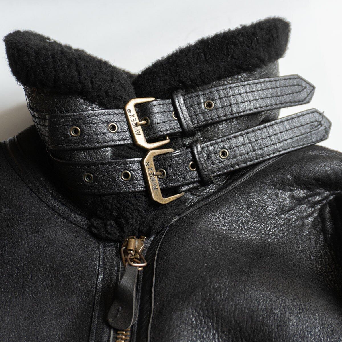【雰囲気抜群】AVIREX【B-3 ムートンボンバージャケット】40 ブラック フライト レザー ジャケット アヴィレックス 25110397