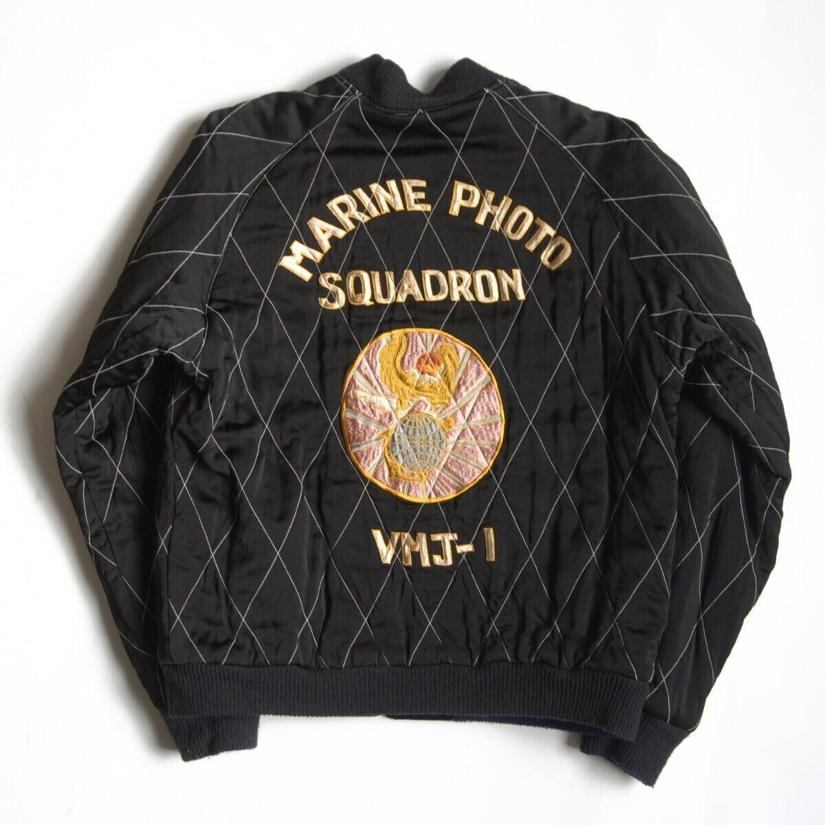 米海兵隊の写真偵察部隊「VMJ-1」は朝鮮戦争後の1954年から1958年まで、厚木基地を拠点に任務を遂行していました。その間に部隊でカスタムオーダーされた貴重なジャケットを再現しています。ネイビー別珍面は海兵隊の兵士が星条旗を立てる世界的に有名な写真の図案(硫黄島)を刺繍。リバーシブル面はには「MARINE PHOTO SQUADRON」ロゴと部隊名にスコードロンパッチの刺繍がされています。お探しの方や気になる方は是非。
