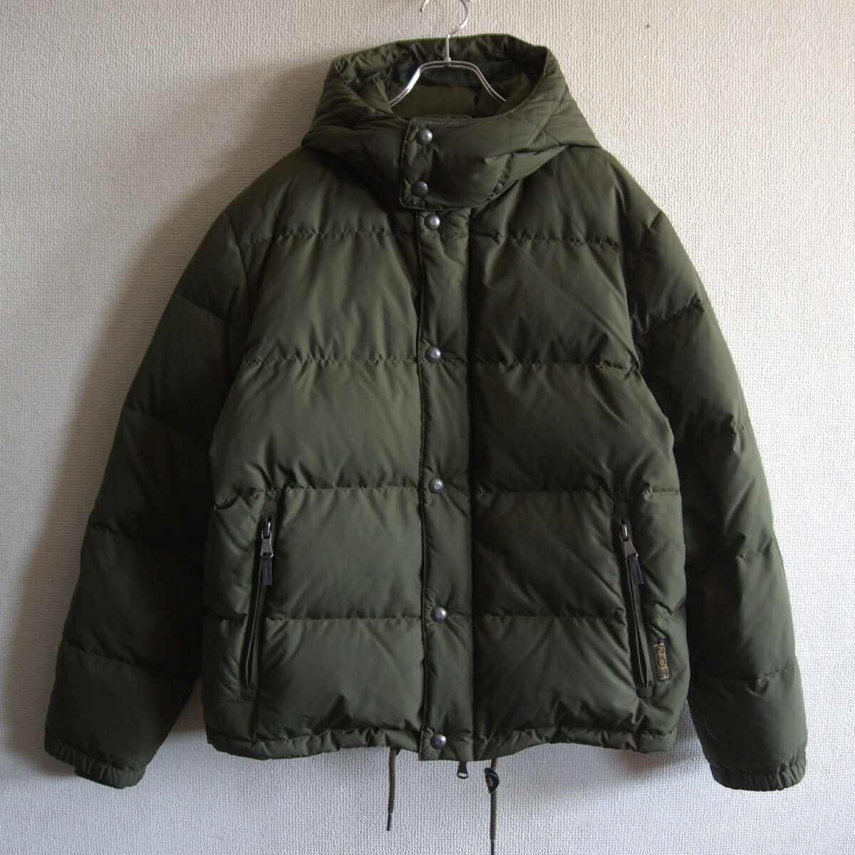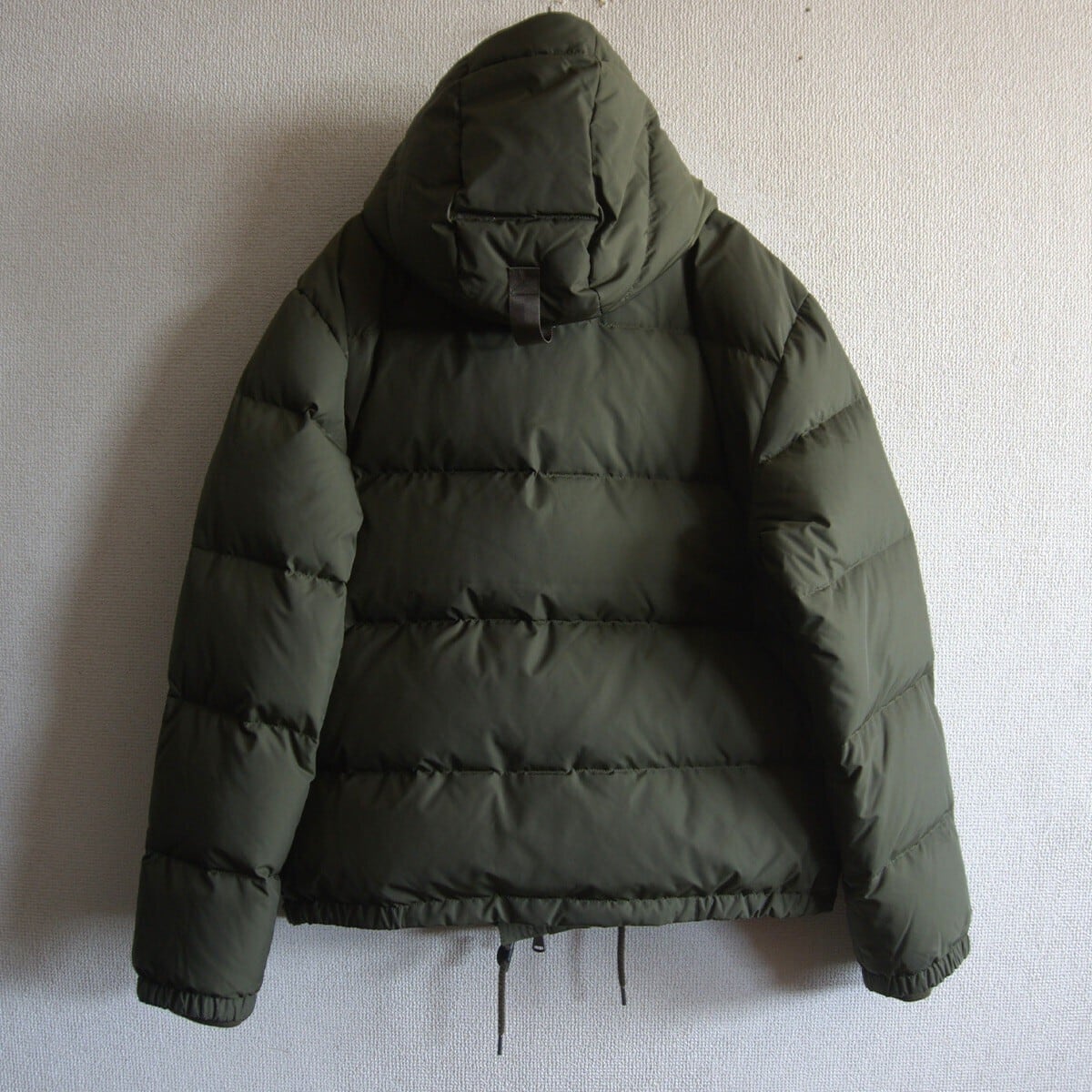 取り外し可能なフードがついたダウンジャケットです。お色はカーキ。