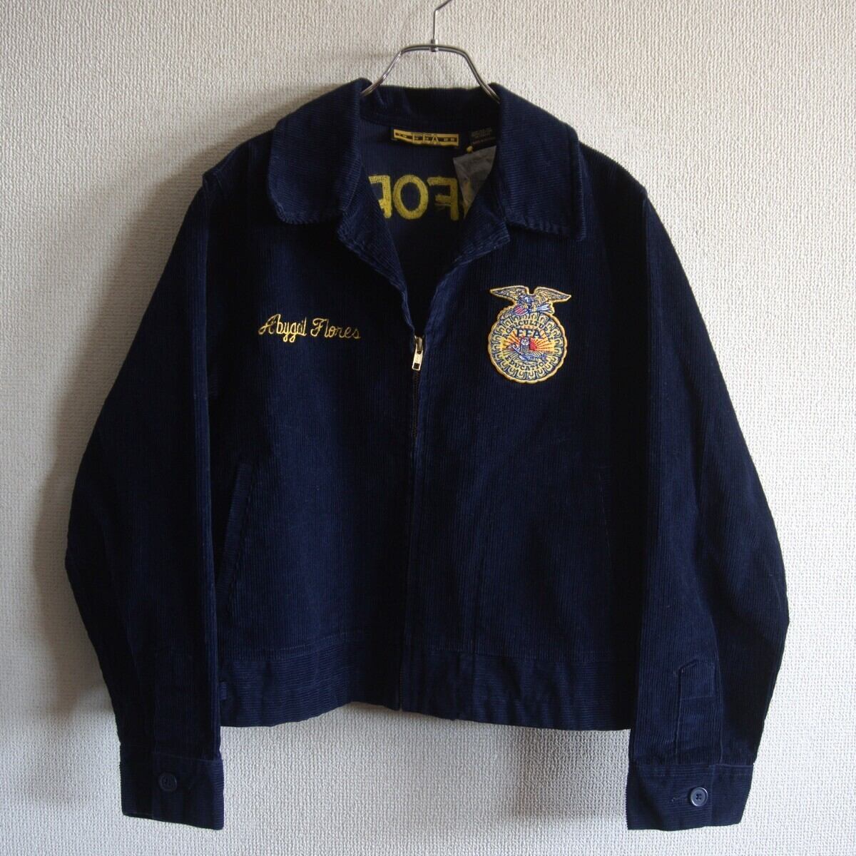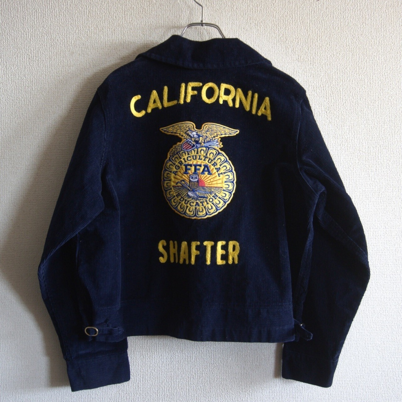 FFAとはFuture Farmars of Americaの頭文字をとった略称でアメリカ合衆国学校農業クラブ連盟のことを指します、『みんなでアメリカの農業の未来を考えていきましょう』という意味になります。その団体のユニフォームとして使用されていたのがこのFFAジャケットです。カラーは紺をベースに前後にはFFAのワッペン後ろにはワッペンの上に各州のチェーンステッチが入っています。お探しの方や気になる方は是非。