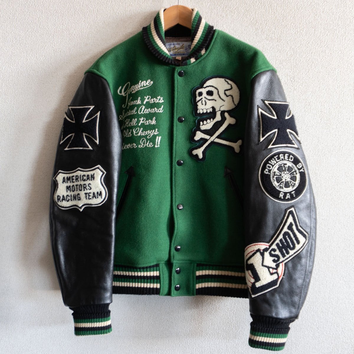レザースリーブ仕様のスタジャン。雰囲気や風合いも抜群の一着です。