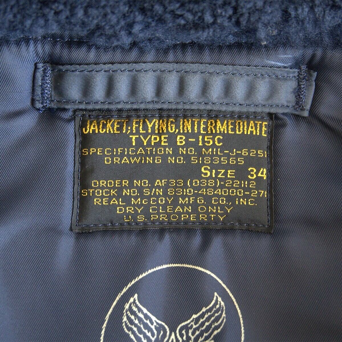 【美品】THE REAL MCCOY'S【B-15C ボア フライトジャケット】34 USAF リアルマッコイ 25110447