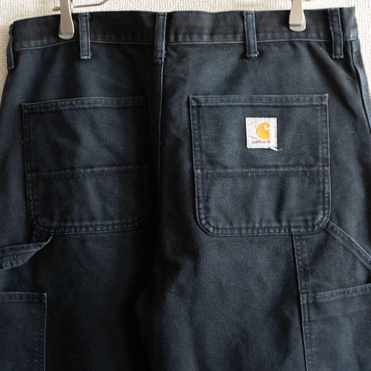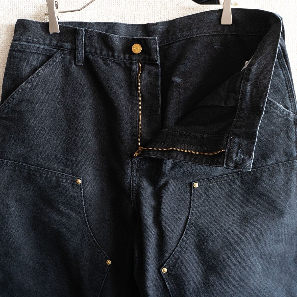 【雰囲気抜群】Carhartt【ダブルニー ペインターパンツ】34×32 ブラック ダメージ ダック カーハート 古着 25110581