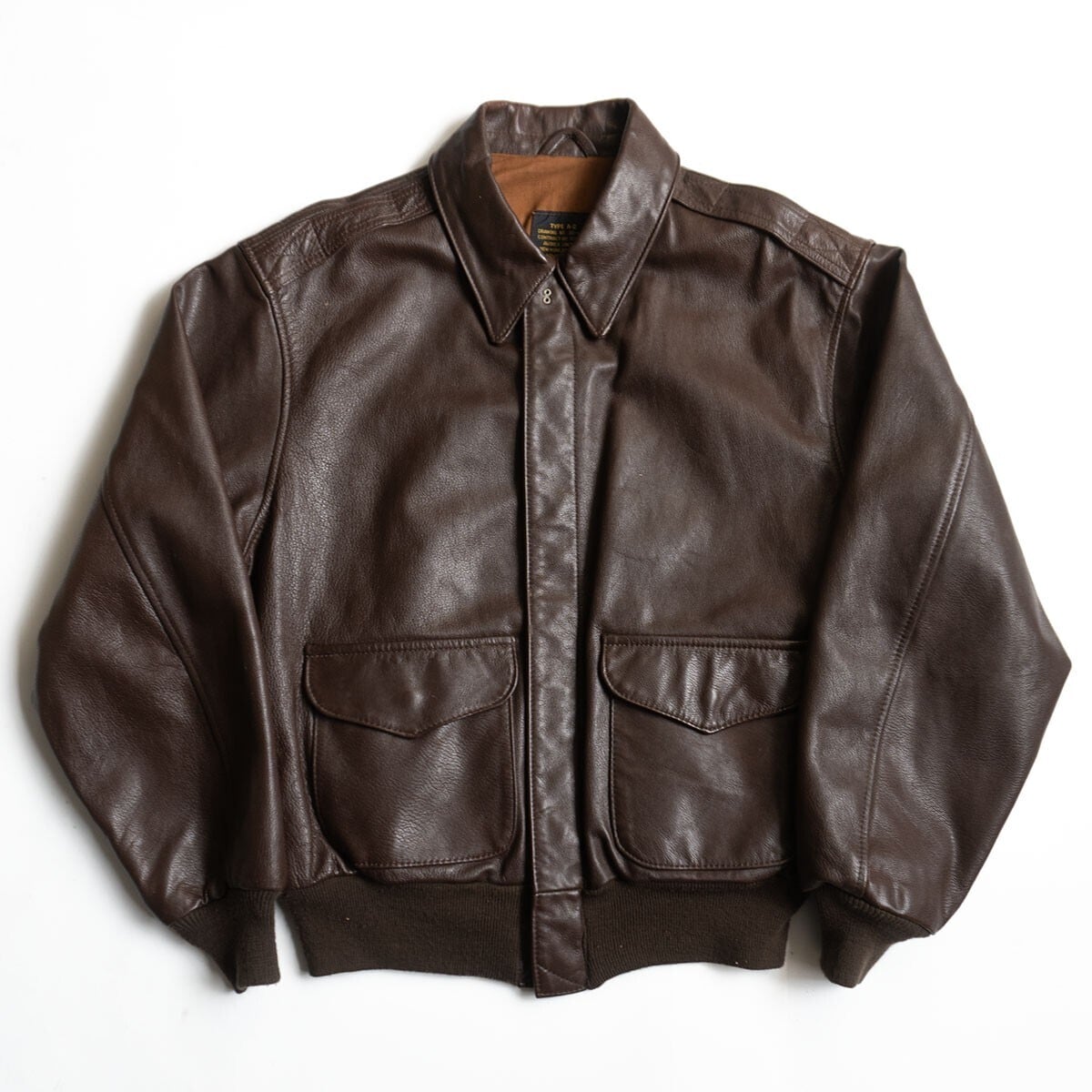 【美品/ビッグサイズ】AVIREX【A-2 フライトジャケット】 44 ブラウン レザー アビレックス 25110567