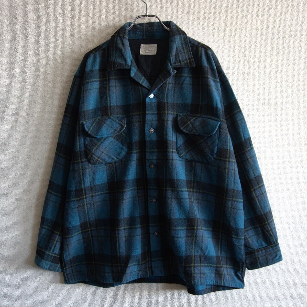 【60s/ビッグサイズ】TOWNCRAFT【オープンカラー ウールチェックシャツ】XL 17-17 1/2 ヴィンテージ タウンクラフト 25110700