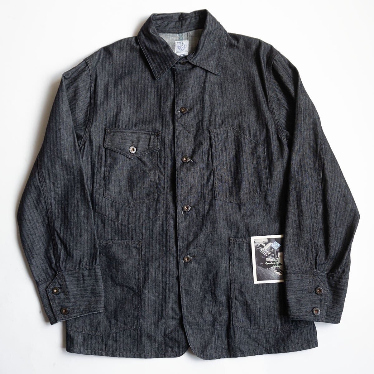 希少なアメリカ製のヘリンボーンカバーオール。デニムのように見えますが、インディゴで染めたヘリンボーン織りの生地を使用しています。お探しの方や気になる方は是非。