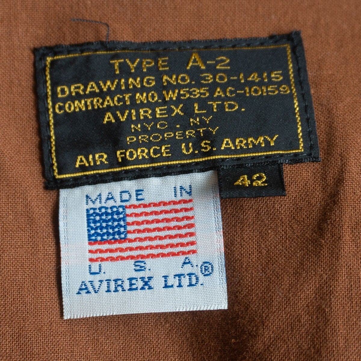 【美品/ビッグサイズ】AVIREX【A-2 フライトジャケット】 42 ブラウン レザー アビレックス 25110597