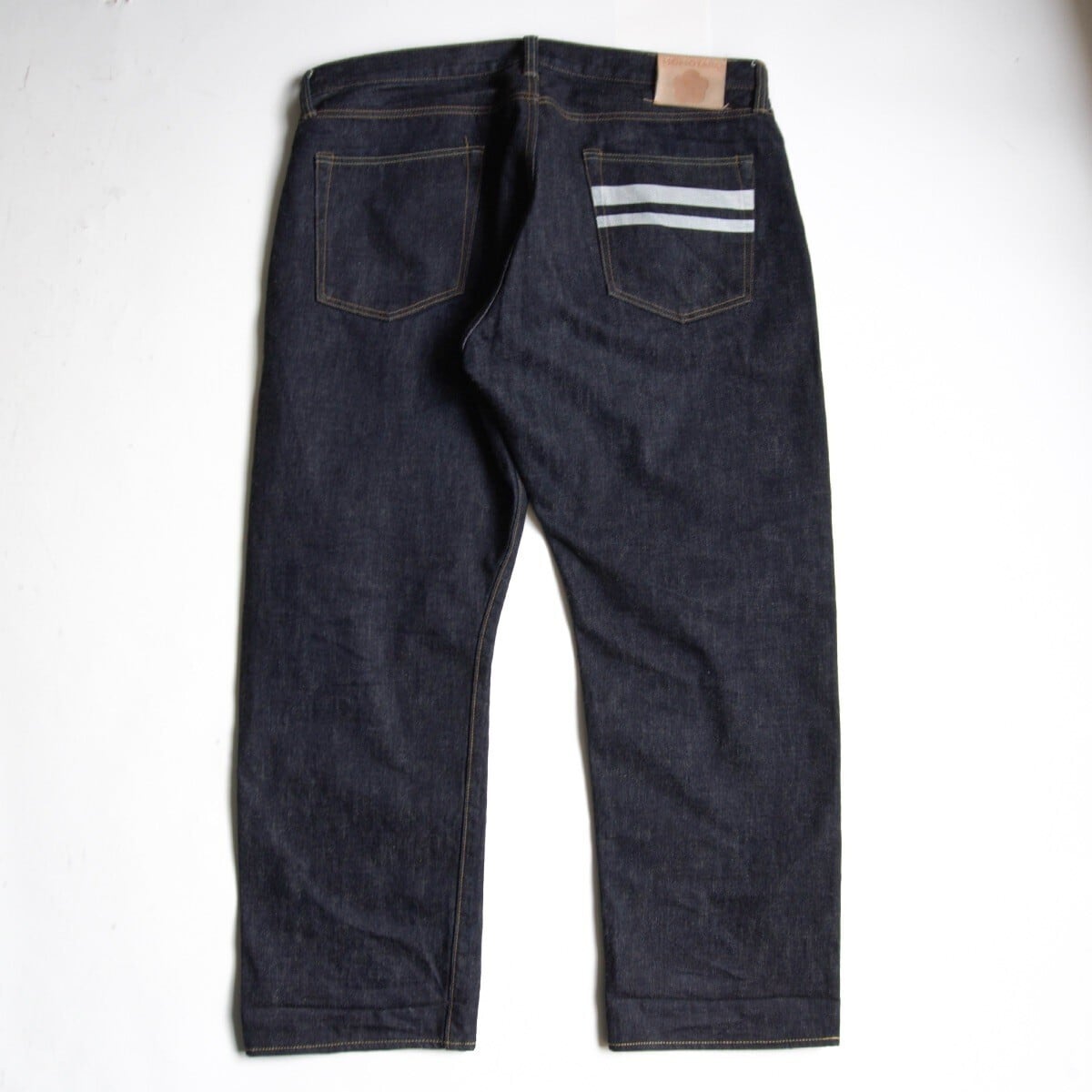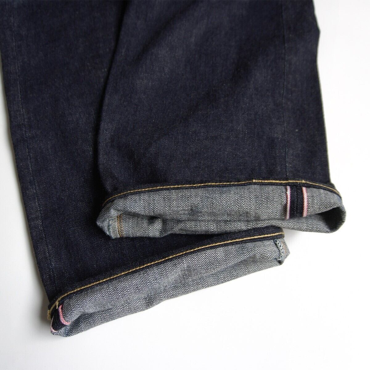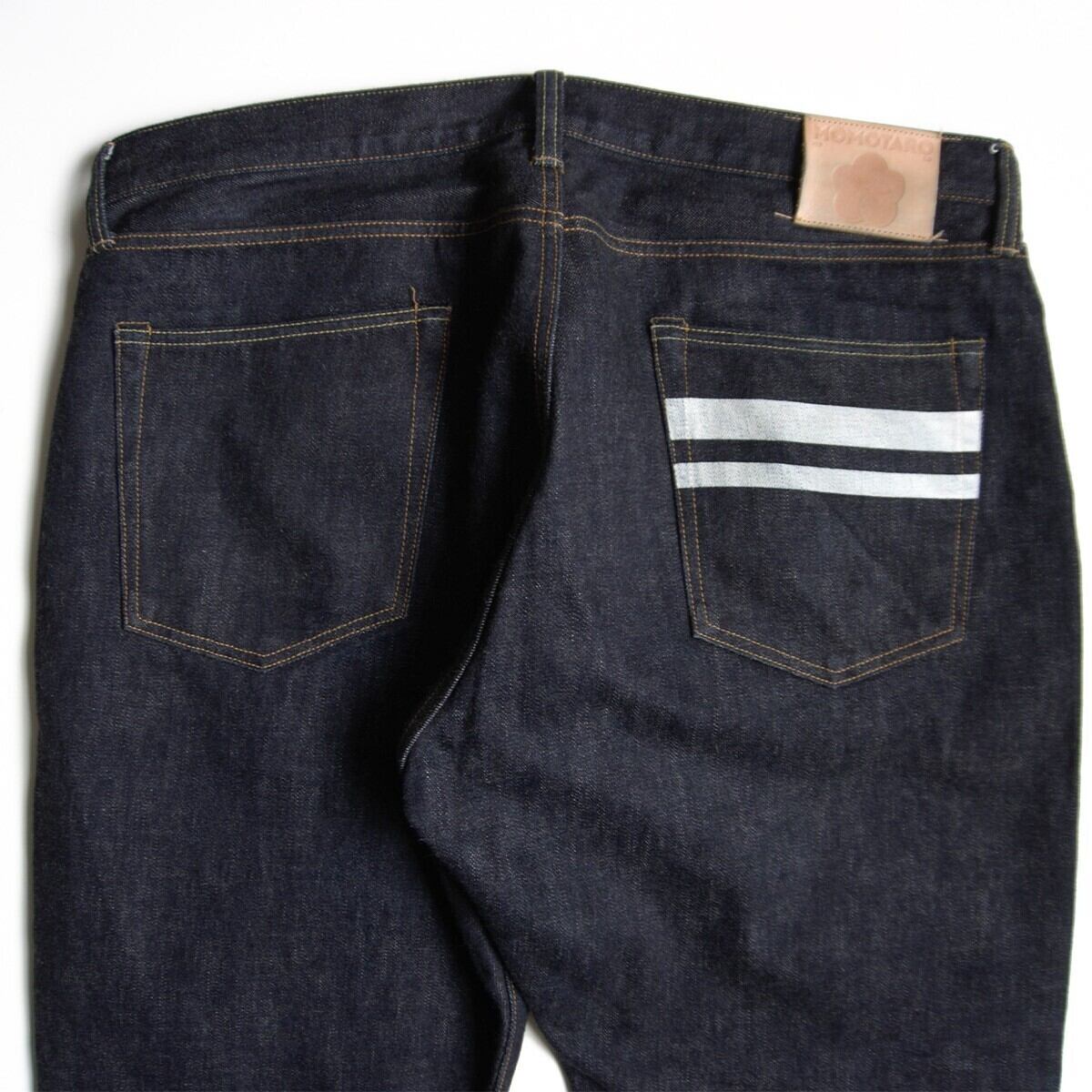 ロープ染色を繰り返し特濃インディゴブルーに染めたジンバブエコットン使用した1本。これから経年変化をお楽しみいただけます。